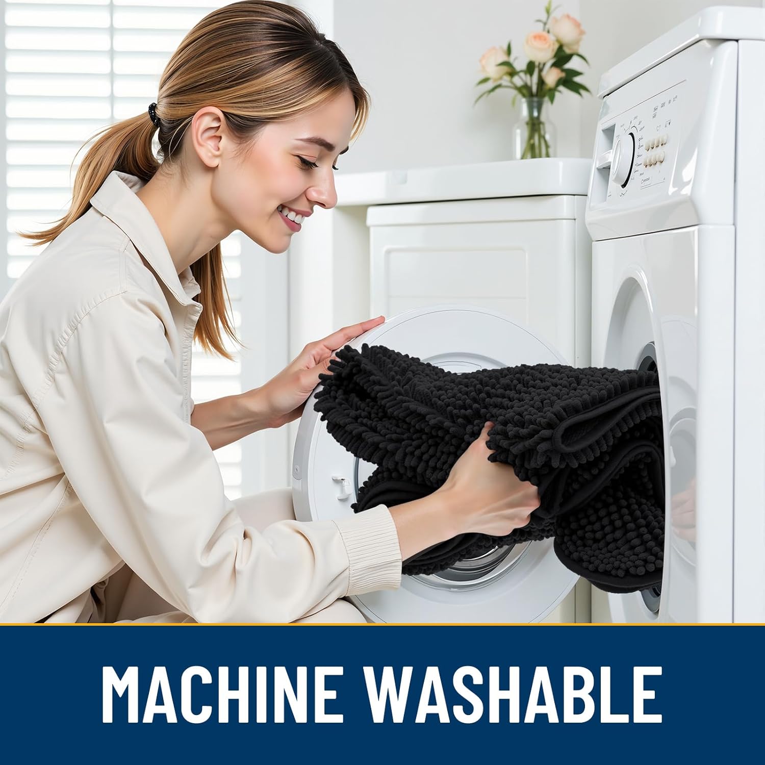 Smiry Dog Door Mat for Muddy Paws 48x30, Absorbs Moisture and Dirt Doormat, Non-Slip Washable Quick Dry Chenille Front Door Mat Indoor Entrance, Entryway Carpet for Inside Floor, Black