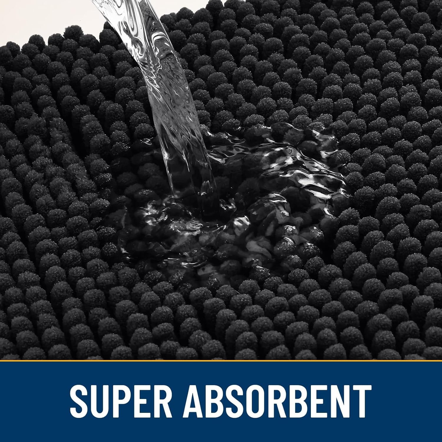 Smiry Dog Door Mat for Muddy Paws 59x24, Absorbs Moisture and Dirt Doormat, Non-Slip Washable Quick Dry Chenille Front Door Mat Indoor Entrance, Entryway Carpet for Inside Floor, Black
