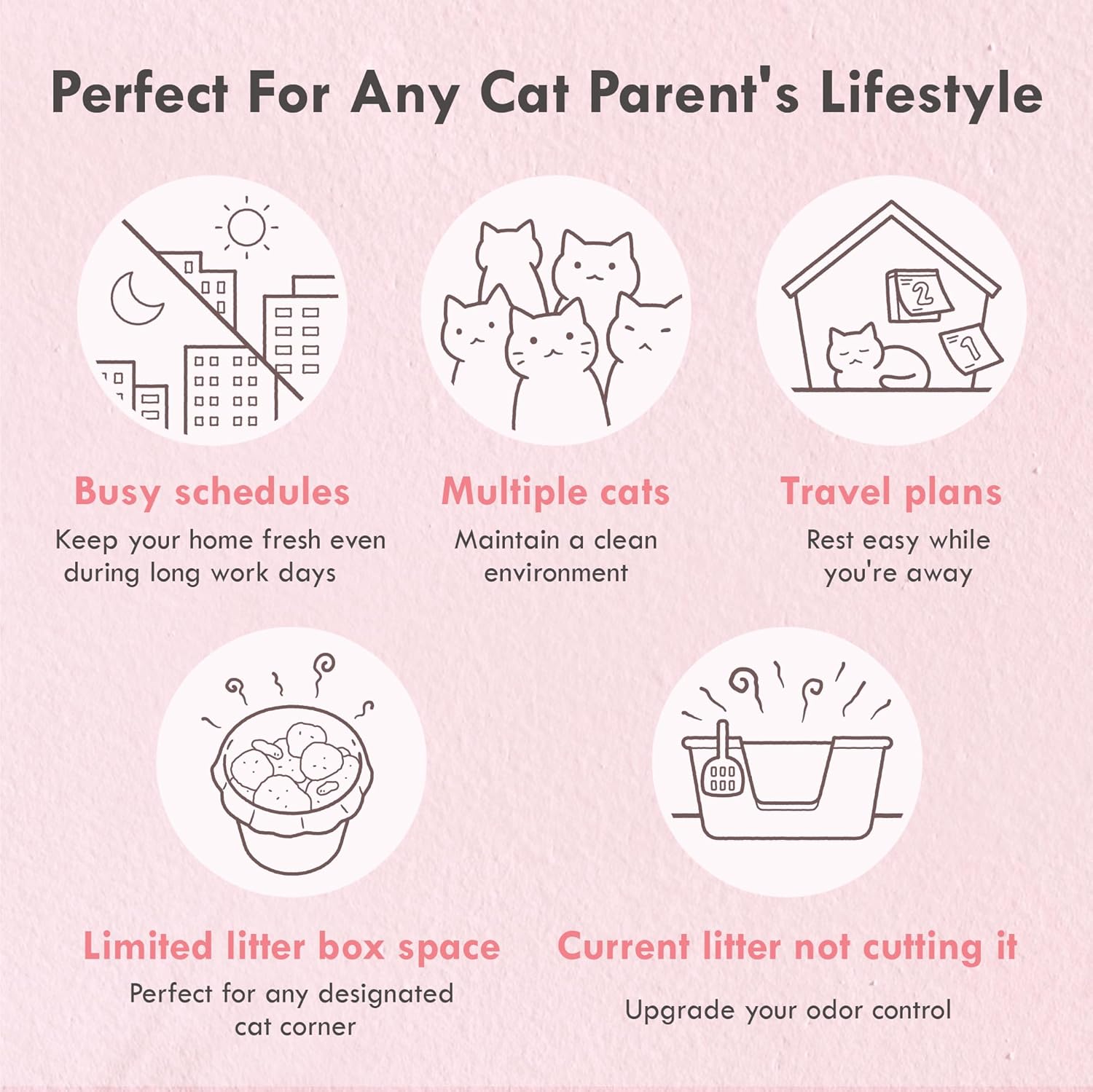 • Advanced Cation Odor Control – Eliminate odors with the power of cation technology, ensuring your litter box stays fresh and pleasant for your cat and family.