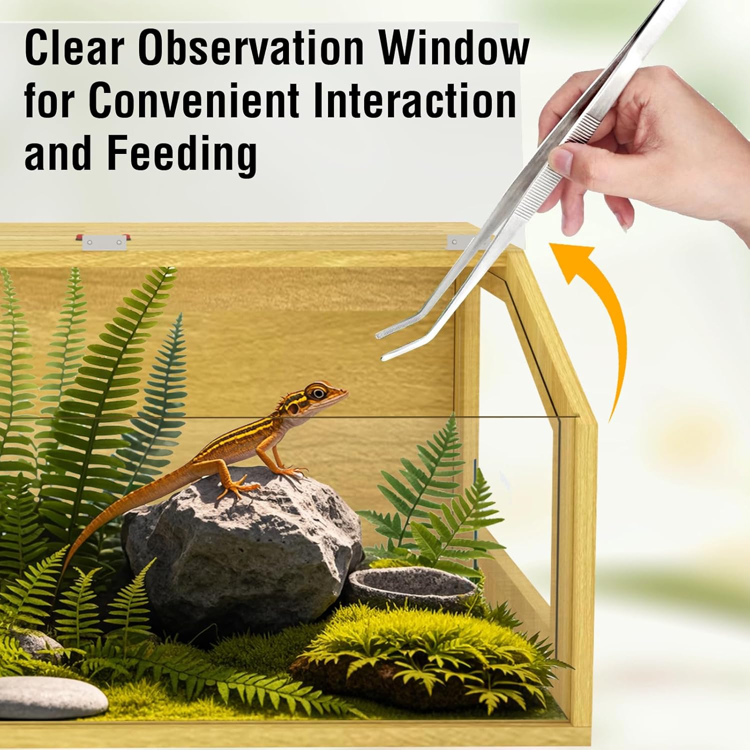 - Reptile-Friendly: Our reptile tank is equipped with a safety lock to prevent escapes. The ventilation holes ensure airflow, maintaining a fresh environment inside; Clear doors and windows facilitate continuous observation and interaction, allowing you to monitor your reptiles and provide timely care