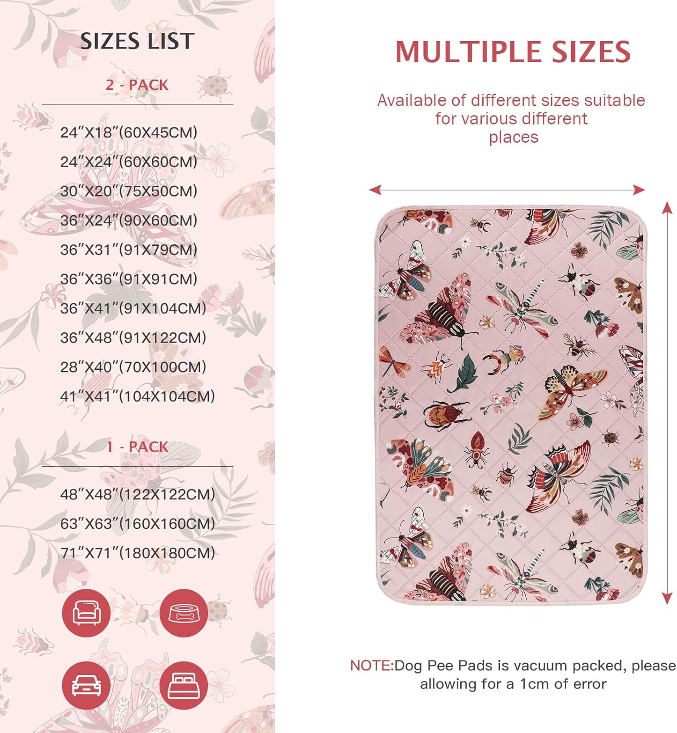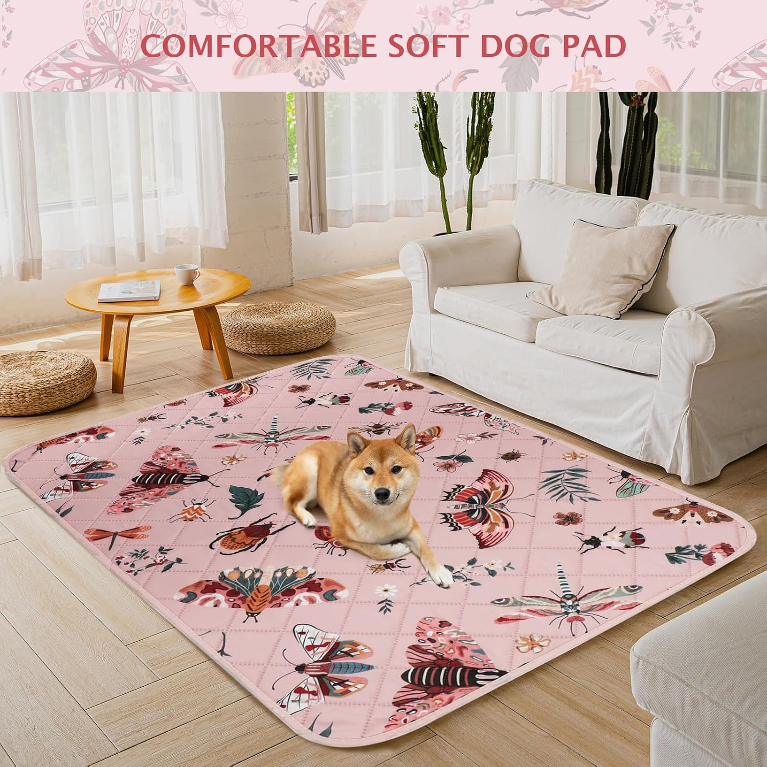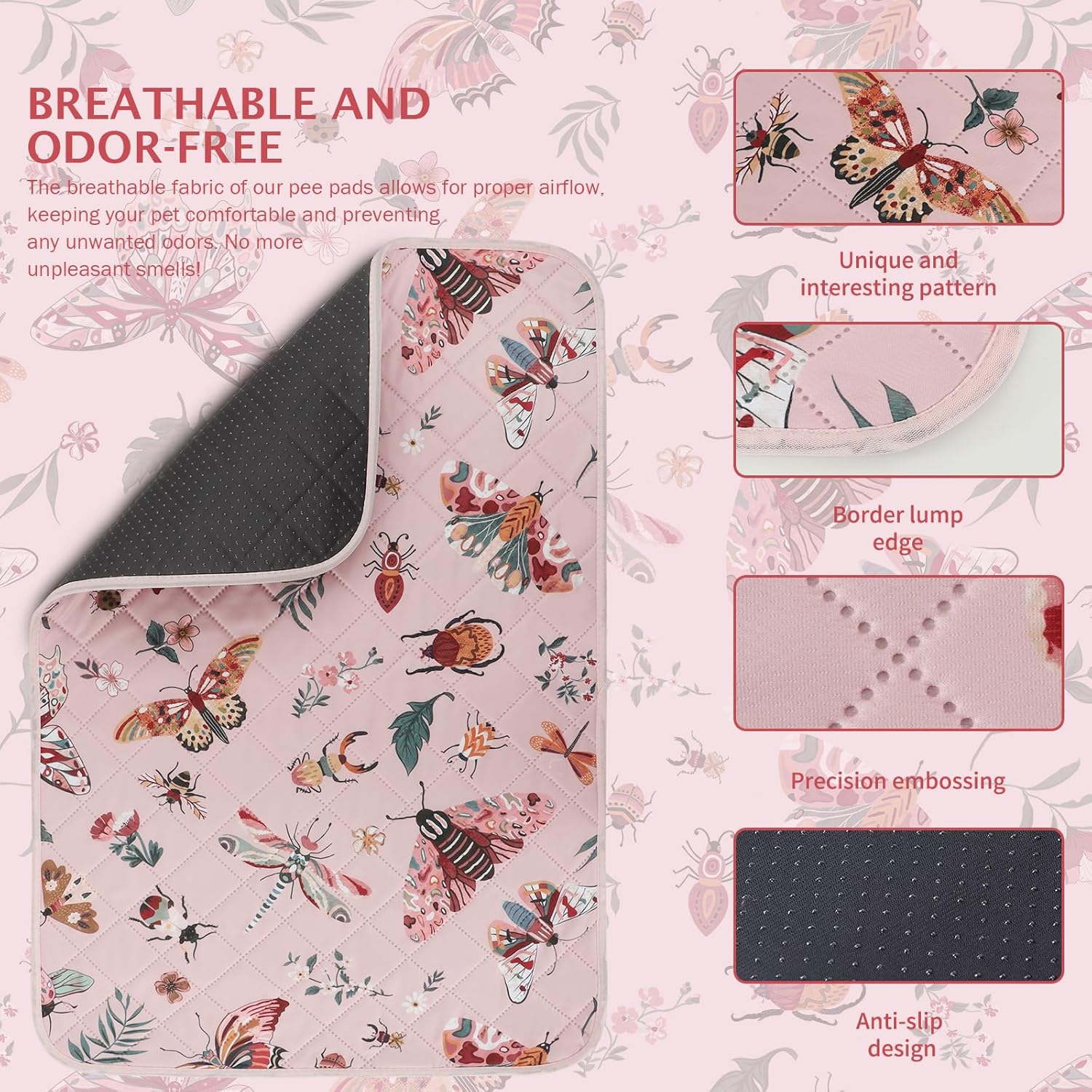 IEUUMLER Washable Pee Pads for Dogs, 1 Pack Insect Pattern Reusable Waterproof Puppy Potty Pads, Non-Slip Absorbent Pet Training Pads for Playpen Crate Bed EU014