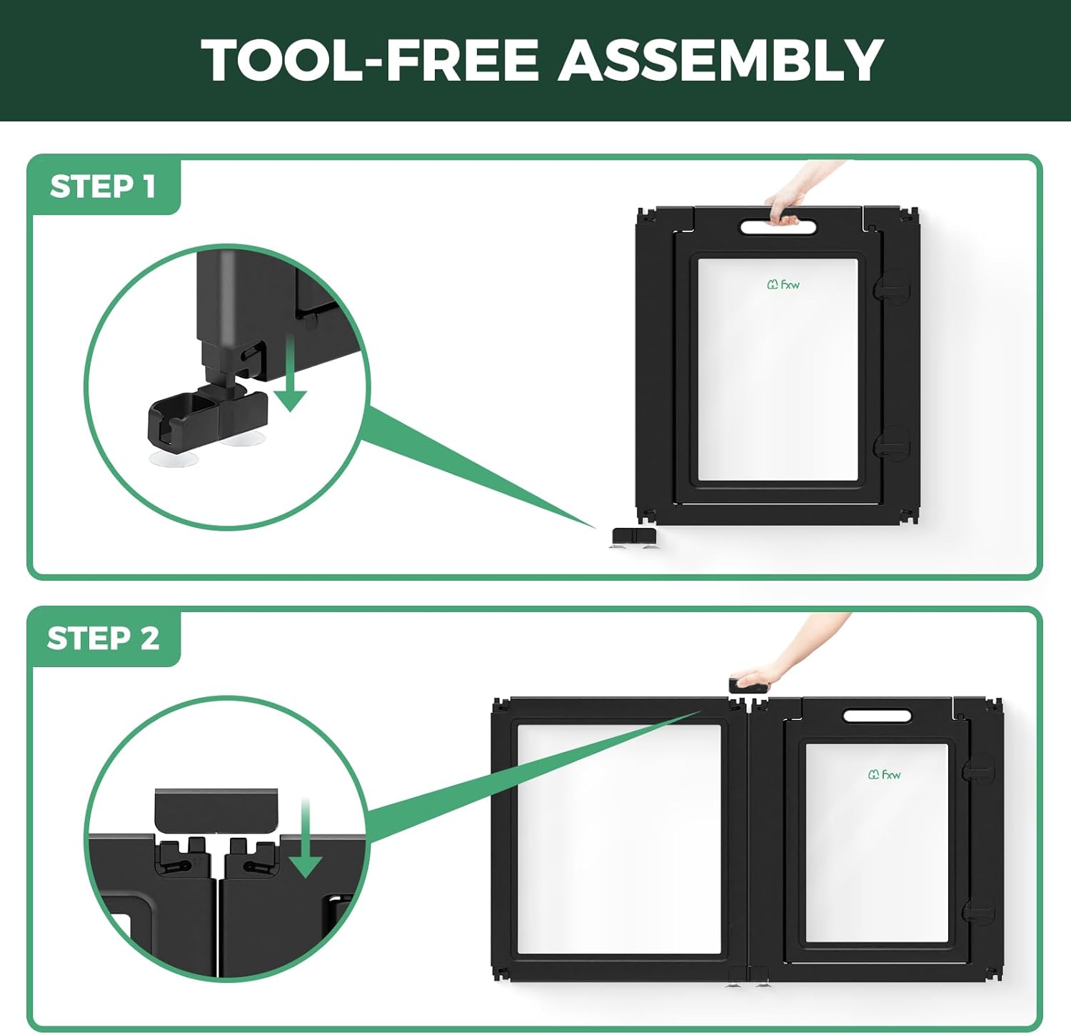 - Tool-Free, Customizable Assembly: No tools required—simply snap the panels together to create the perfect play area or barrier, with flexibility to adapt to any space.