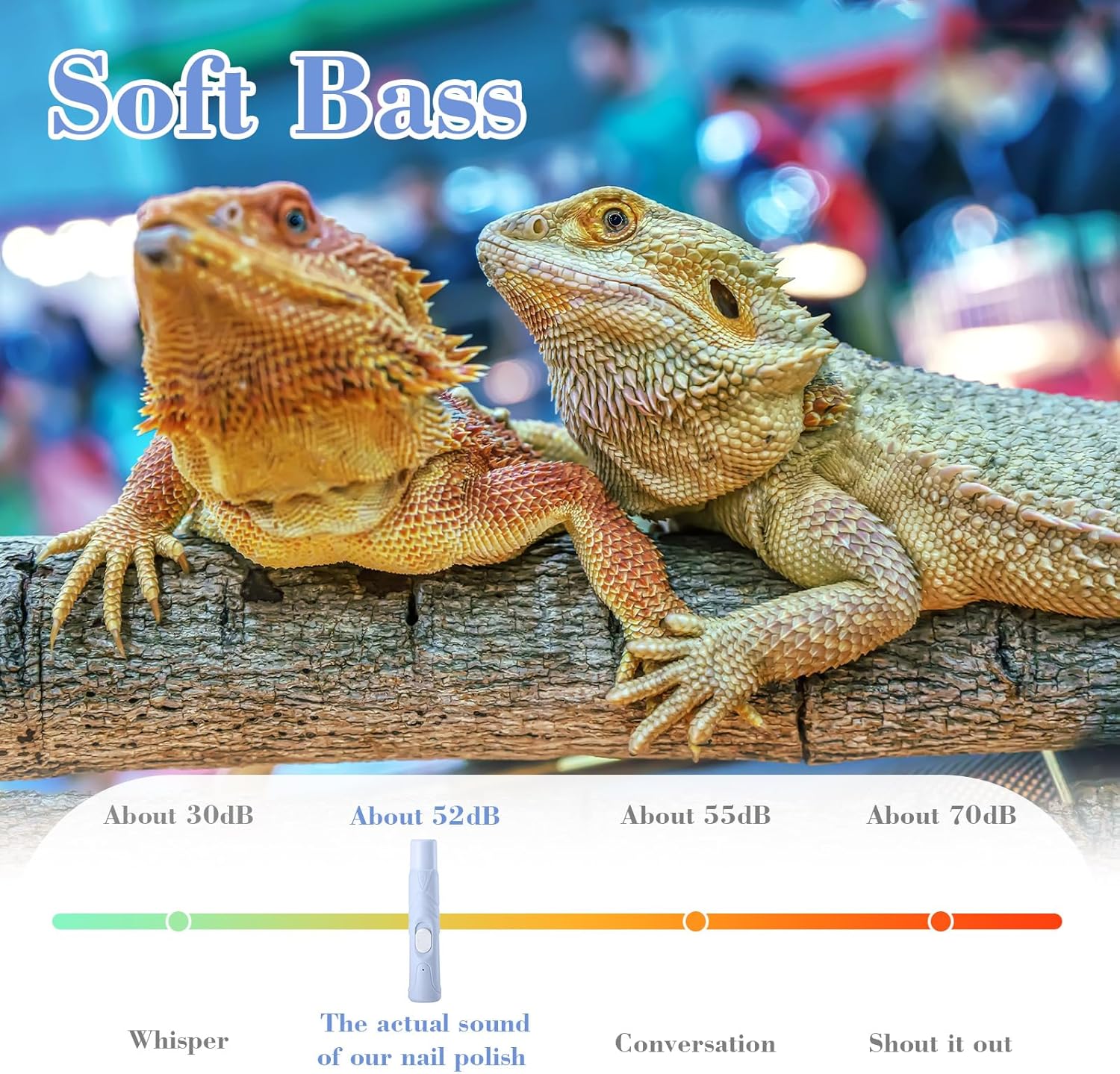 • Low Noise Operation for Comfortable Grooming: engineered with motor and mute technology, the bearded dragon nail grinder only produces a noise of around 52dB when operating; This low-noise operation ensures a quiet and comfortable grooming environment, making it an ideal choice for your bearded dragon and other pets