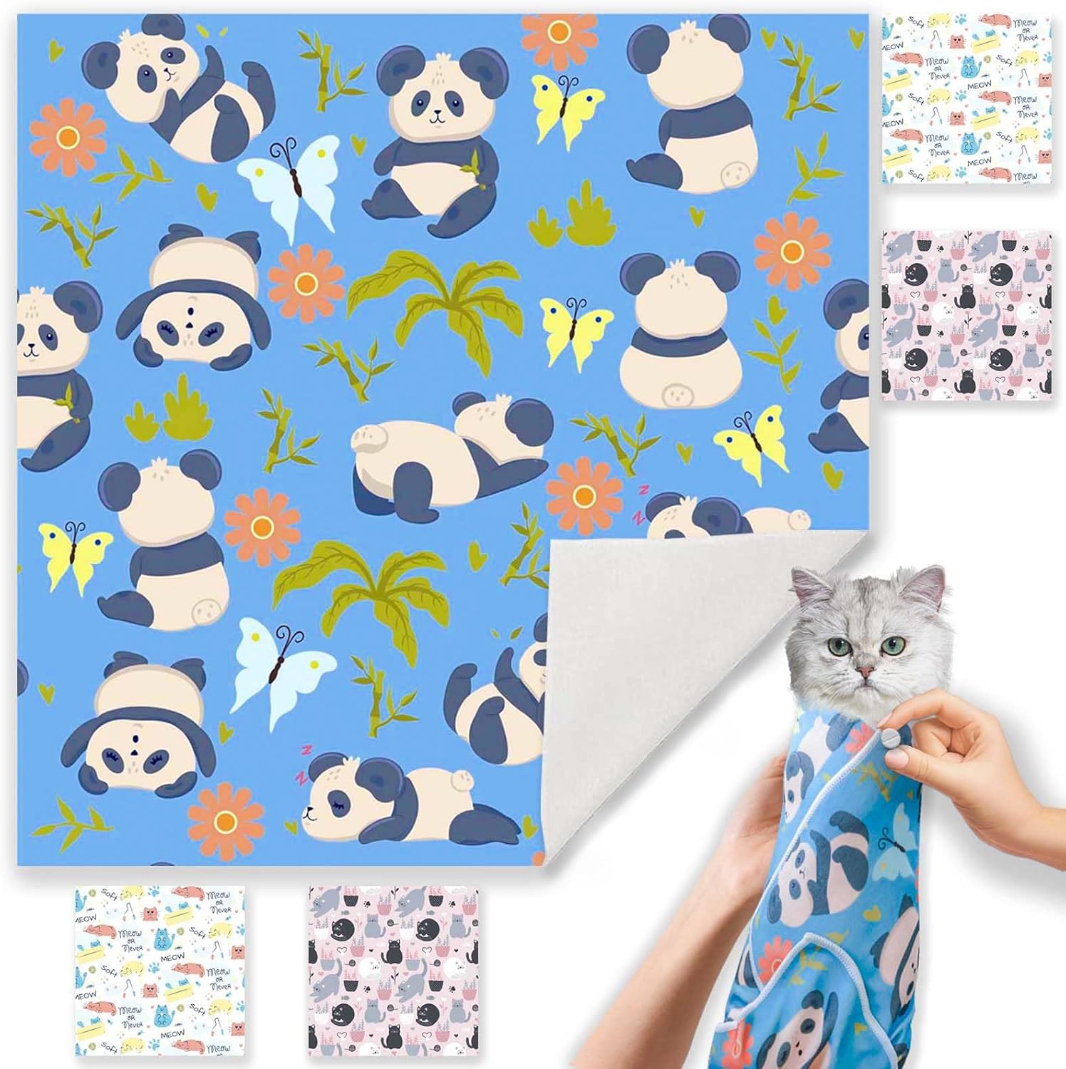 - 【2025 New Cat Grooming Wrap】This new cat wrap fabric features innovative patterns, including pink kitten and panda designs, providing you with a unique visual experience.