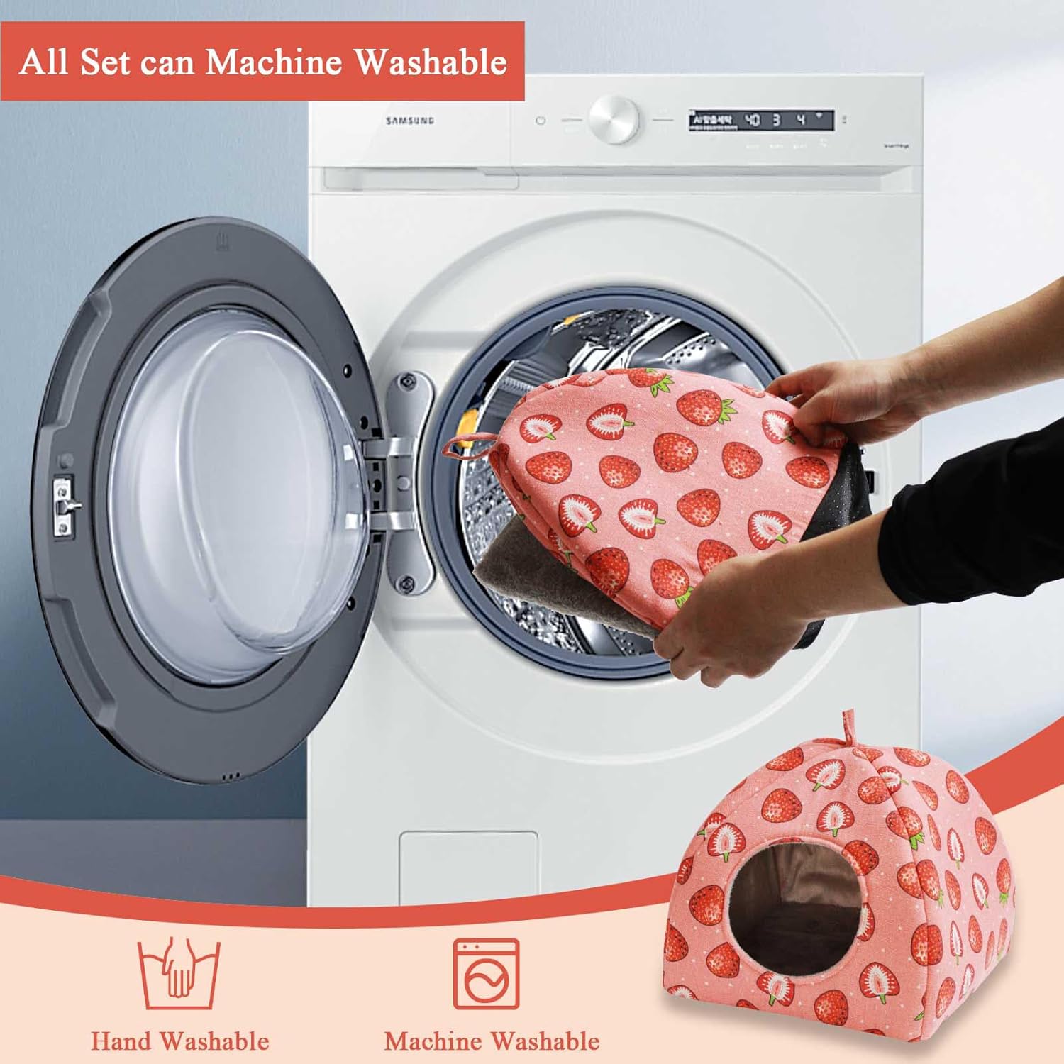 • Multi-Scenario Functional Design--This versatile hideout serves as a cozy sleeping bed, a hideaway for cages, or a comfortable lap cushion for bonding time. Whether your pet needs a nap or a safe spot to retreat, this bed provides the perfect solution.Bright colors and whimsical strawberries make them stylish standalone decor even when not in use by pets