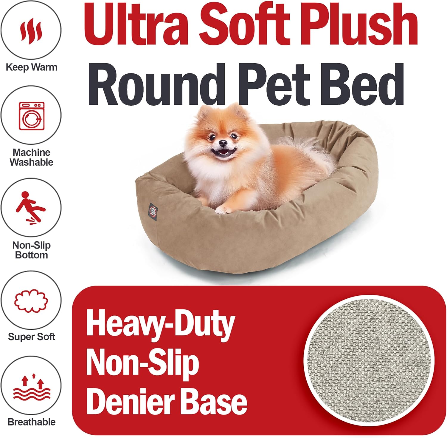 - [Elegance meets durability] - Crafted with premium high-loft polyester fill, the Majestic Pet dog bed offers a regal sleeping experience, lasting quality, and exceptional loft and coziness. The cushioned pillow adds an extra layer of comfort to pamper your pet. No more compromising on comfort, style, or ease of cleaning. Upgrade your pet's lifestyle today with our round dog bed.