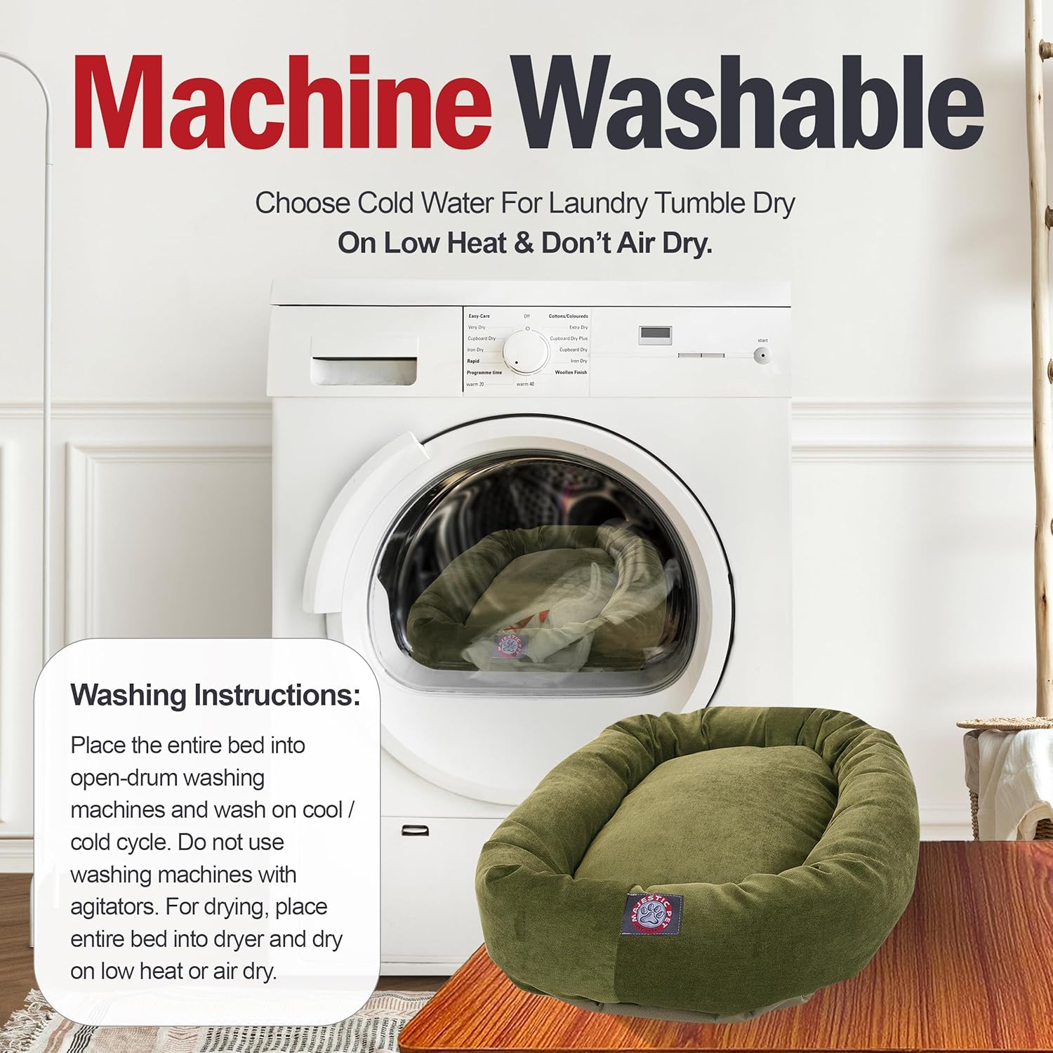 Majestic Pet 24 Inch Micro Velvet Calming Dog Bed Washable 24x19x7 (inch) – Cozy Soft Round Donut Dog Bed with Spine for Head Support - Pet Bed Small – Fern (2025)