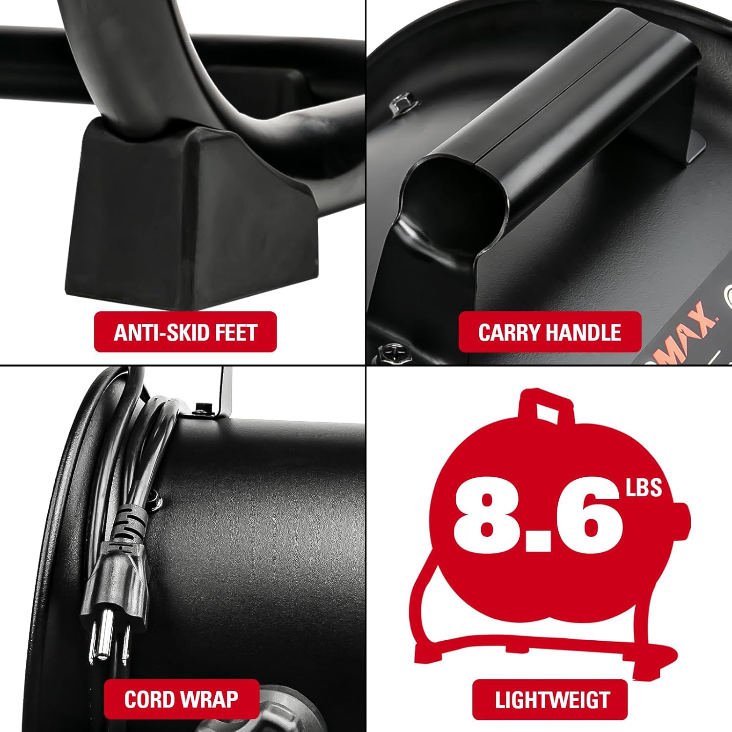 • 【Sturdy & Portable Design】 Built with a durable metal construction and aluminum blades, this high-velocity fan offers long-lasting performance, making it a reliable investment. A convenient carry handle allows for effortless transportation, and the 6.5 ft cord wrap ensures easy storage