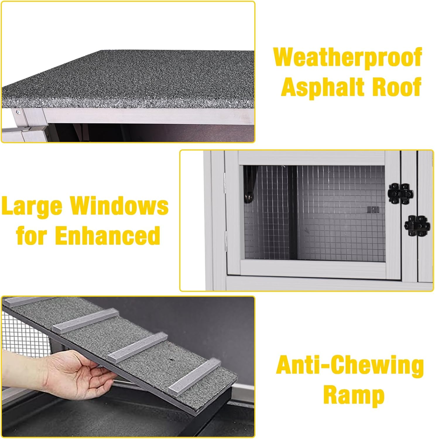 • All-Weather Protection: Weather-resistant asphalt roof and a cozy nesting box shield your pet from harsh conditions, ensuring year-round comfort and safety