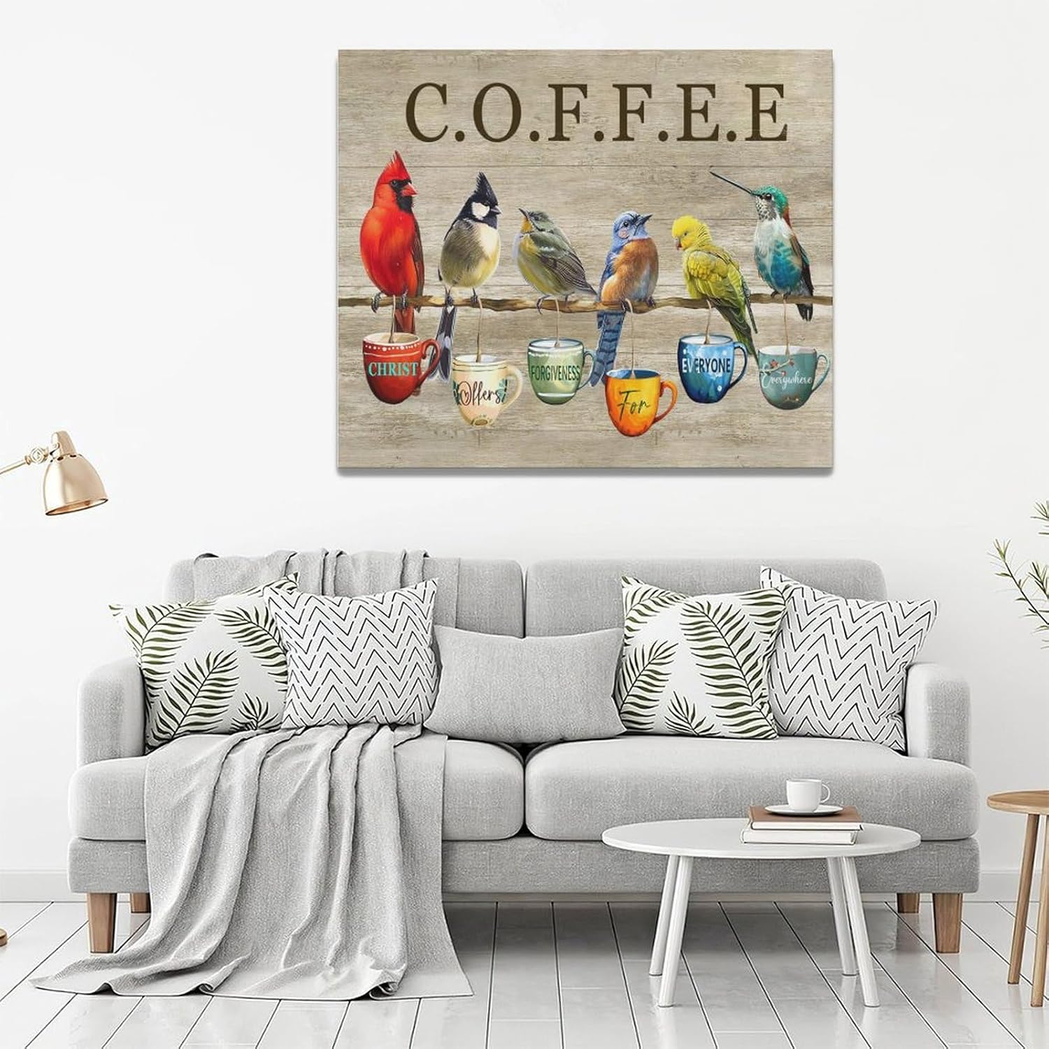 Rustic Bird Coffee Wall Art Kitchen Christ Coffee Pictures Wall Decor Farmhouse Cardinal Hummingbird Canvas Print Painting Artwork for Coffee Bar Living Room Bedroom 20"x24"