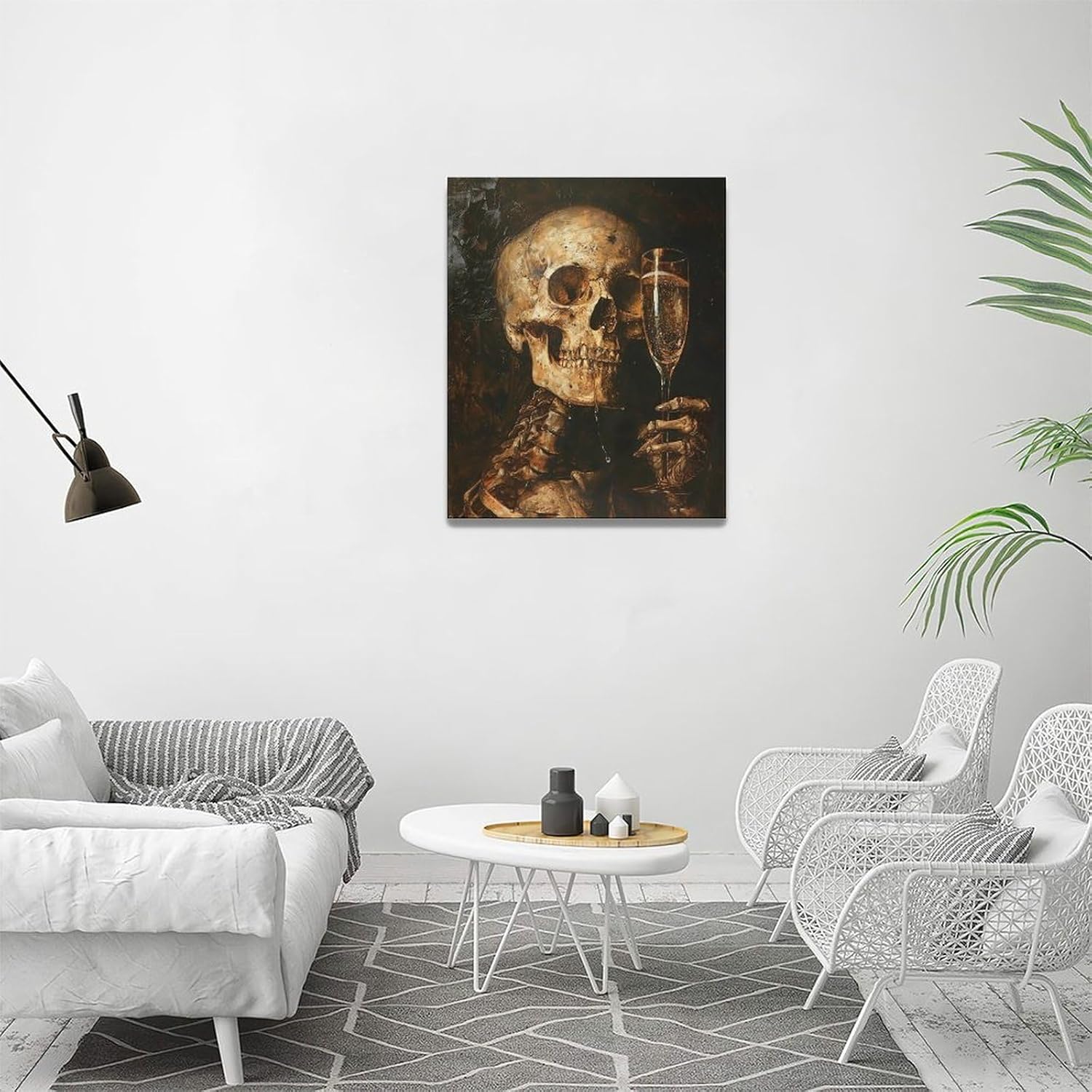 Quorin Gothic Skeleton Wall Art Goth Skull Champagne Wall Decor Dark Academia Pictures Horror Canvas Print Painting Artwork for Bathroom Living Room Bedroom 16"x20"