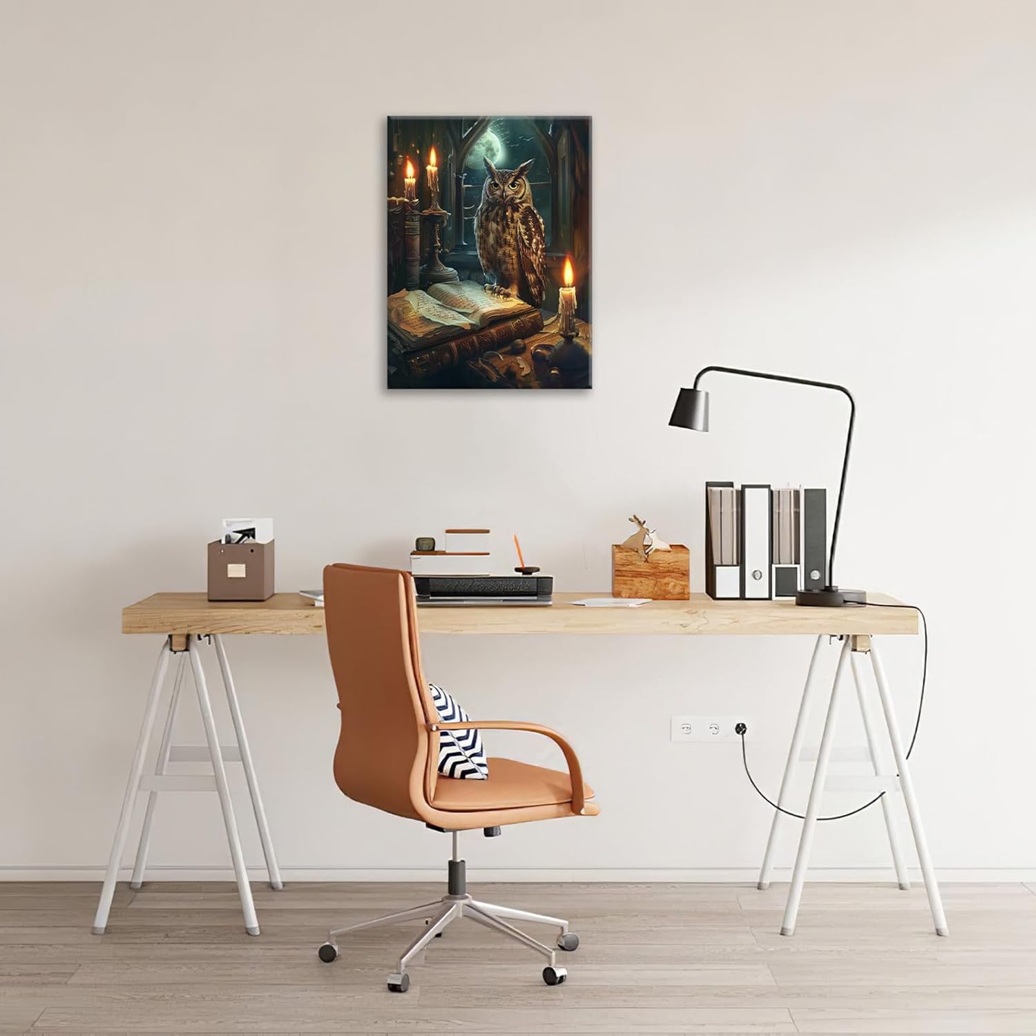 Owl Book Wall Art Vintage Canvas Wall Decor Prints Framed Painting Owls Pictures Gifts Artwork for Bathroom Living Dining Bedroom 12"x16"