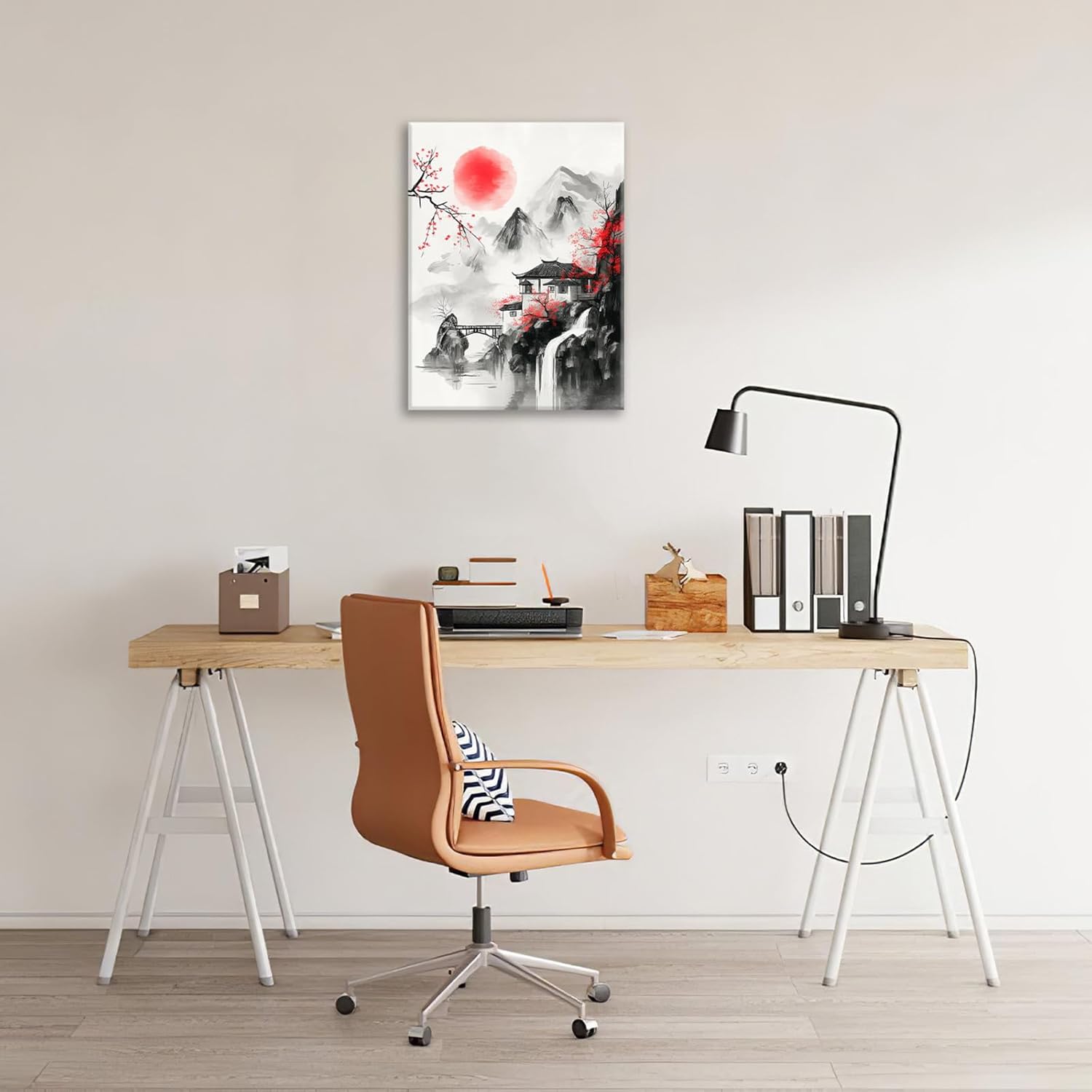 Japanese Wall Art Canvas Asian Nature Wall Decor Prints Framed Painting Mountain Landscape Pictures Gifts Artwork for Bathroom 16"x20"