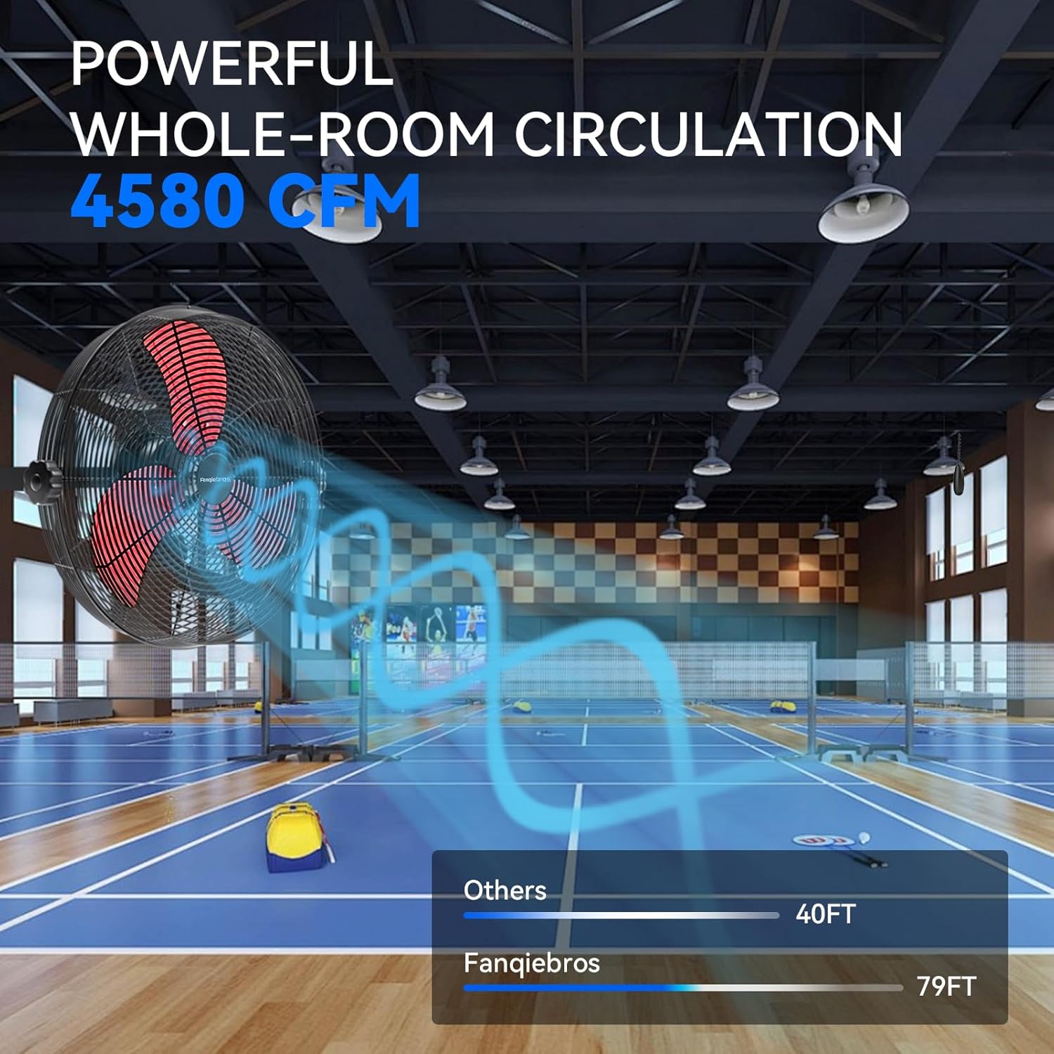 • š‹šØš°-ššØš¢š¬šž šƒšžš¬š¢š š§ - The heavy-duty wall fan operates at a high speed of 4580 CFM with a noise level of only 60dB, which is lower than the industry standard, creating a quieter gathering or working environment
