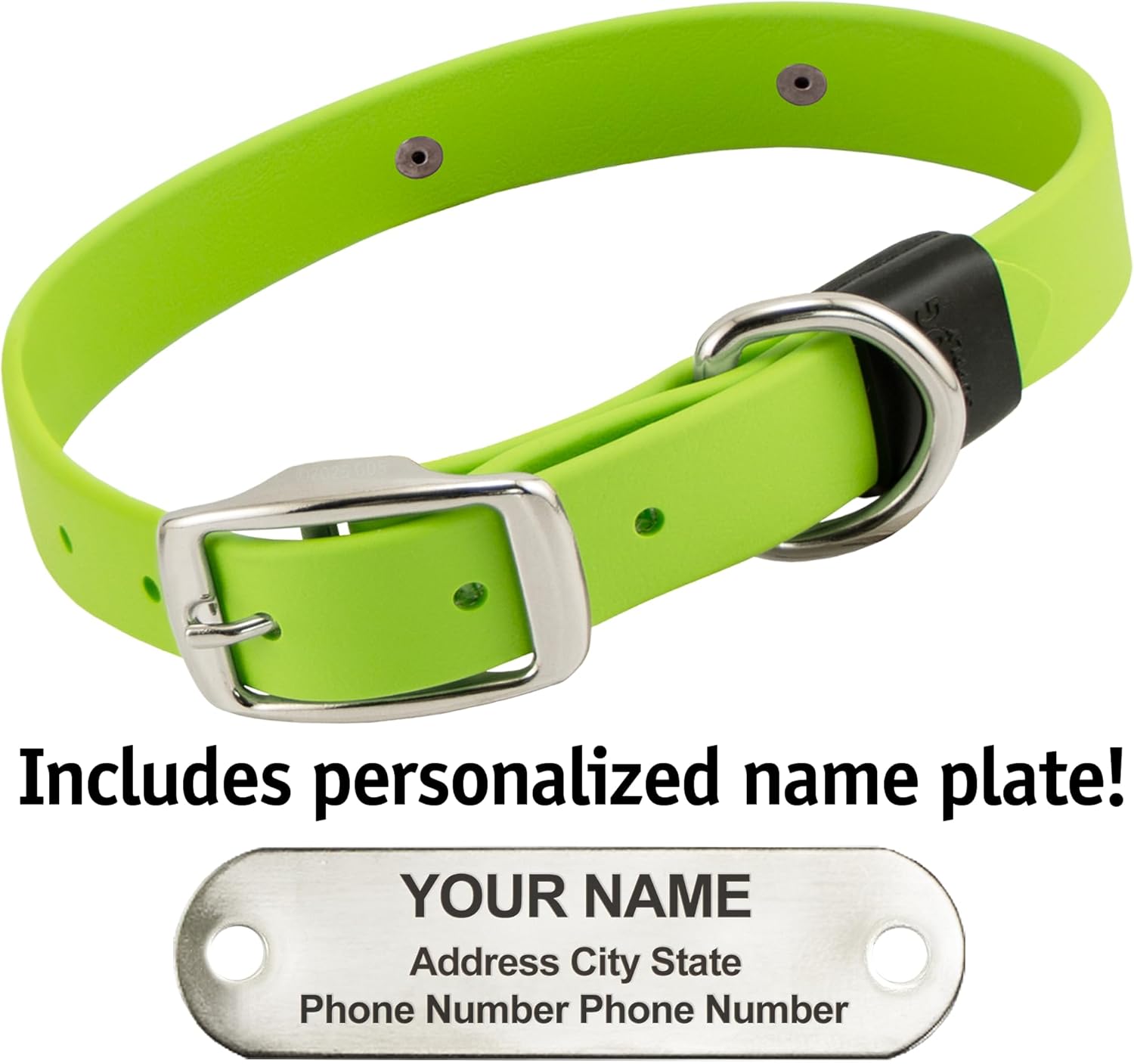 Biothane Custom Dog Collar – Waterproof, Stink-Proof Personalized Collar with Name & Phone Number – Durable, Many Sizes and Colors – Assembled in USA (Green Apple)