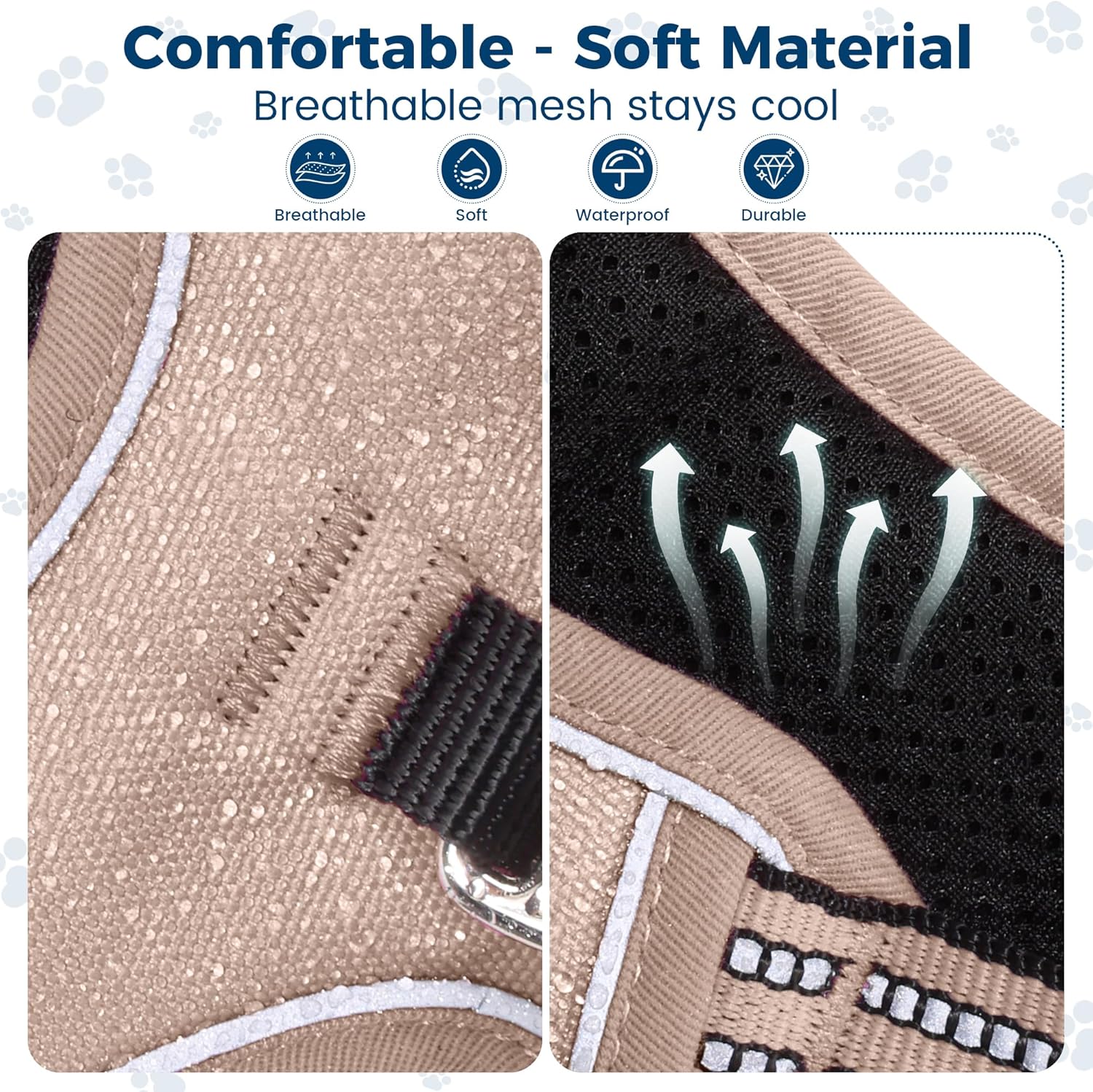 • MAXIMIZE COMFORT: 100% polyester + oxford fabric, durable and waterproof. Lightweight mesh lining and soft padding on the chest and abdomen for good load distribution and injury prevention. Protects your pet while offering maximum comfort and long-term use. Breathable air mesh allows the dog from sultry after activity.