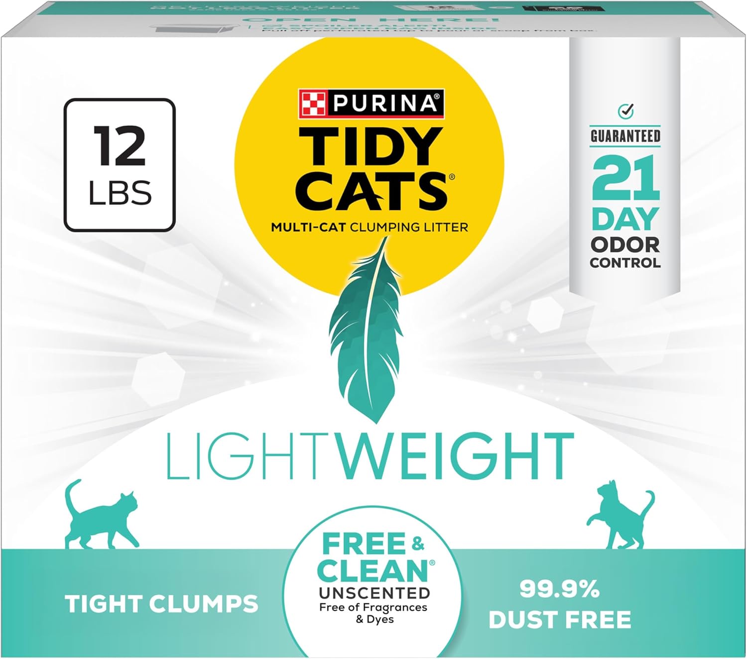 Purina Tidy Cats Lightweight Free and Clean Unscented, Multi-Cat, Clumping, 99.9 Percent Dust Free Cat Litter - 12 lb. Box