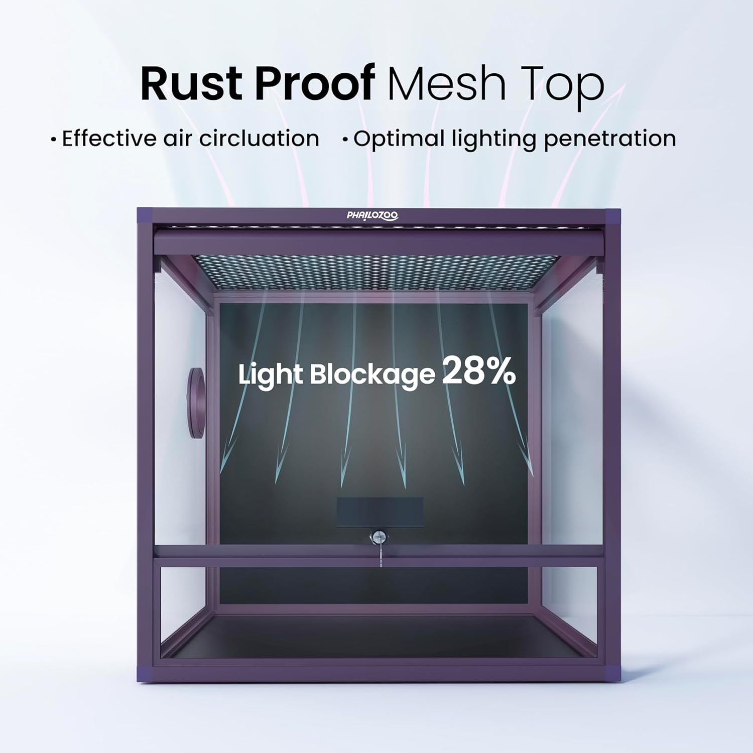 • 【Perfect for Beginners】Phailozoo 24-gallon reptile tank with single grommet measures 18'Lx18''Wx18''H. It only weighs 16.5 pounds. Easily assembled in six steps, perfect for first time reptile keepers.