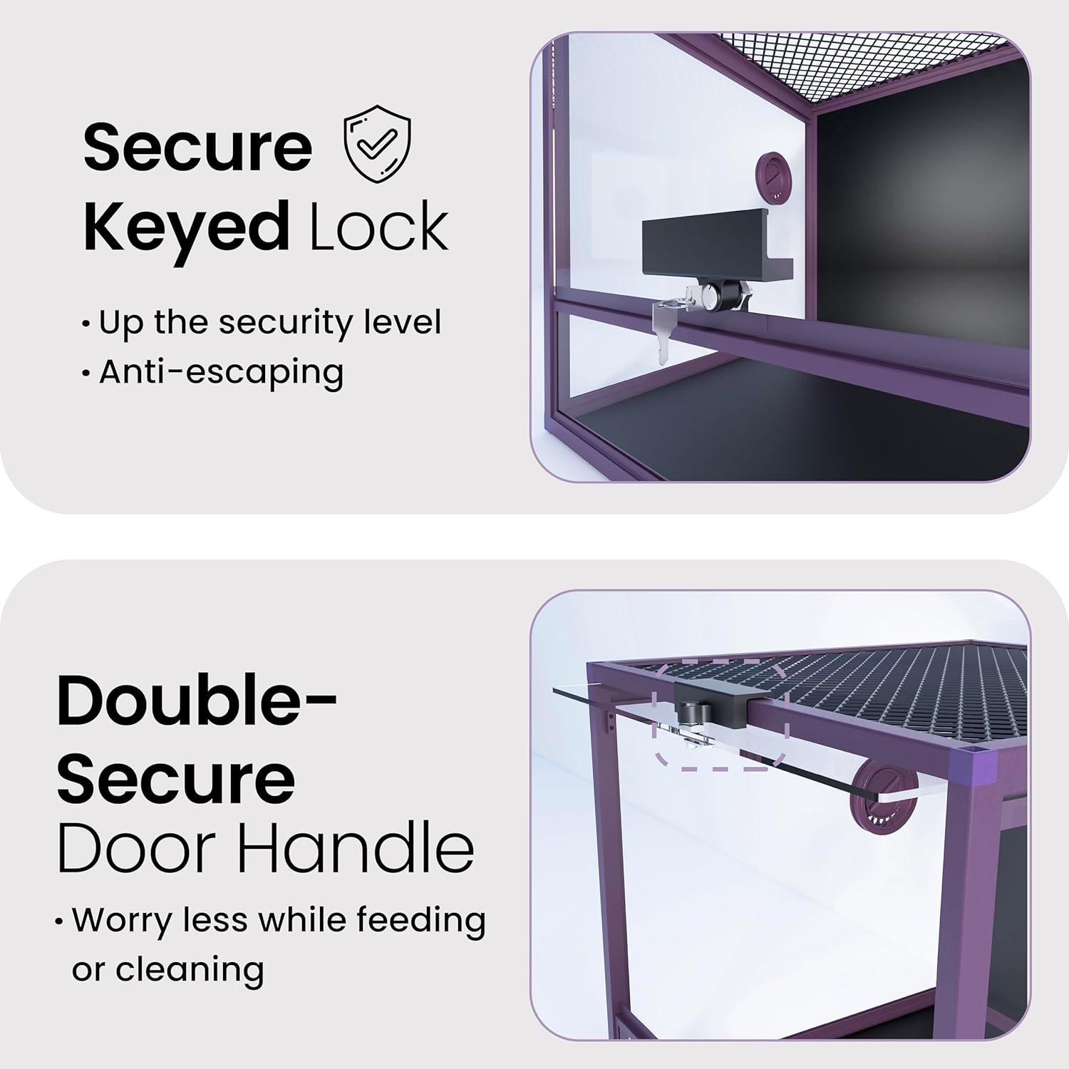 • 【Lock Included】A tempered glass door with a safety keyed lock to prevent escape and accidental opening by others. NO GAPS FOR ESCAPING with fully closed structure. Rigid tempered glass doors for extra safety.