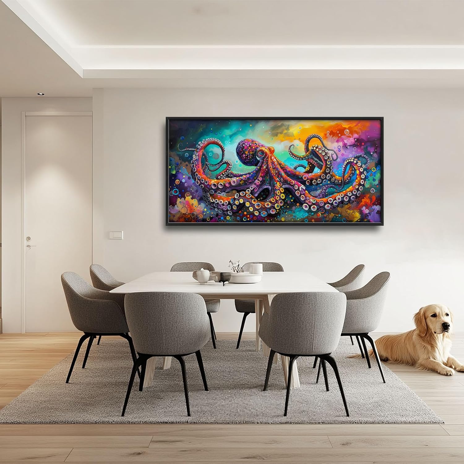 Quorin Octopus Large Wall Art Abstract Colorful Octopus Pictures Sea Ocean Animal Wall Decor Canvas Print Painting Artwork for Bathroom Living Room Bedroom 60L x 30W