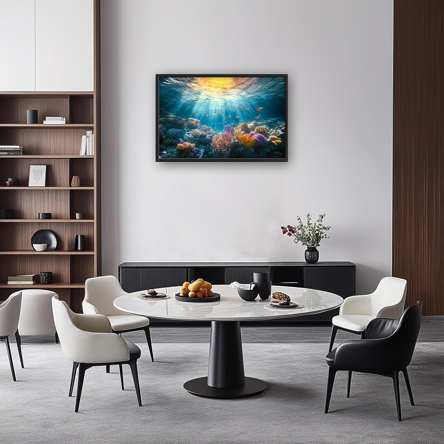 - 【Unique Design】A vibrant coral reef with colorful fish swimming around, sunlight filtering through the water creating beautiful light rays.