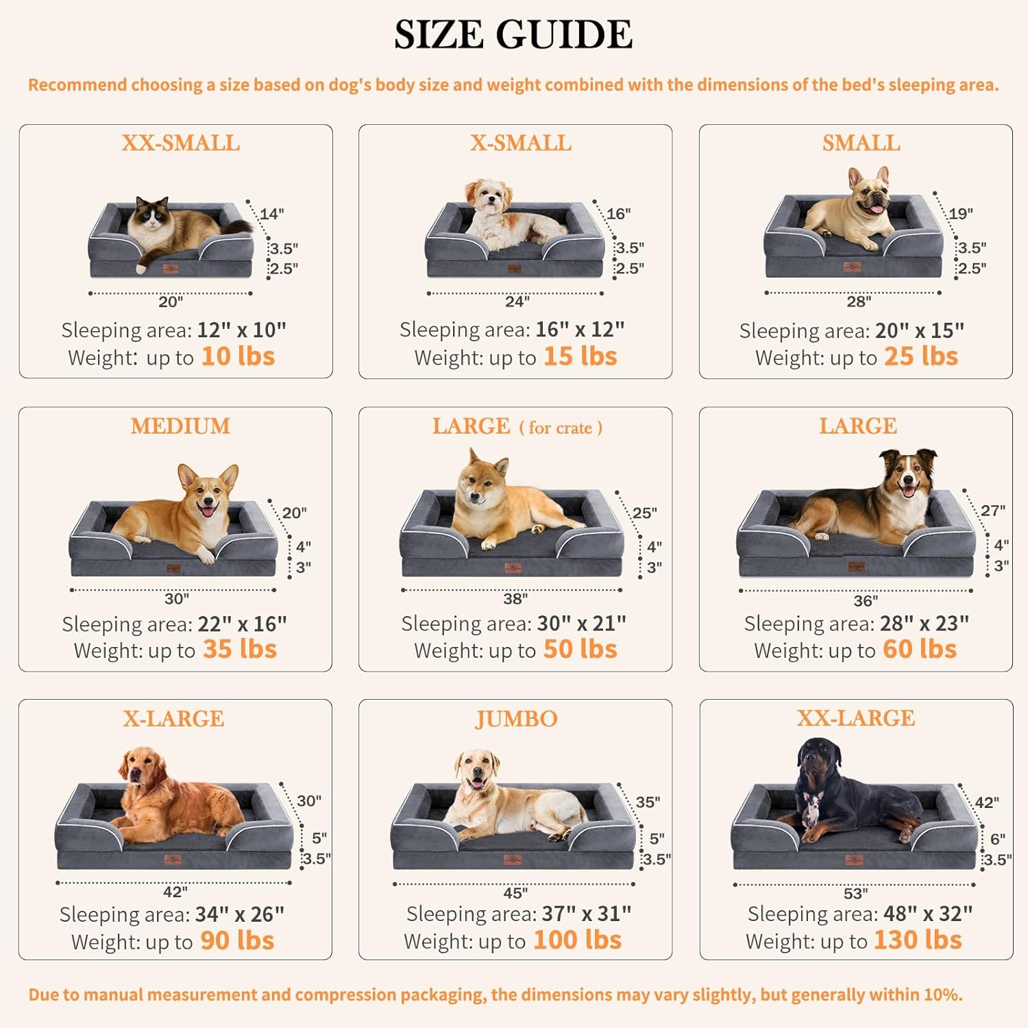 Comfort Expression Small Dog Beds Waterproof Orthopedic Foam Dog Sofa Beds for Medium Dogs Comfy Pet Bed with Washable Removable Cover & Non-Slip Bottom(Small,Dark Grey)
