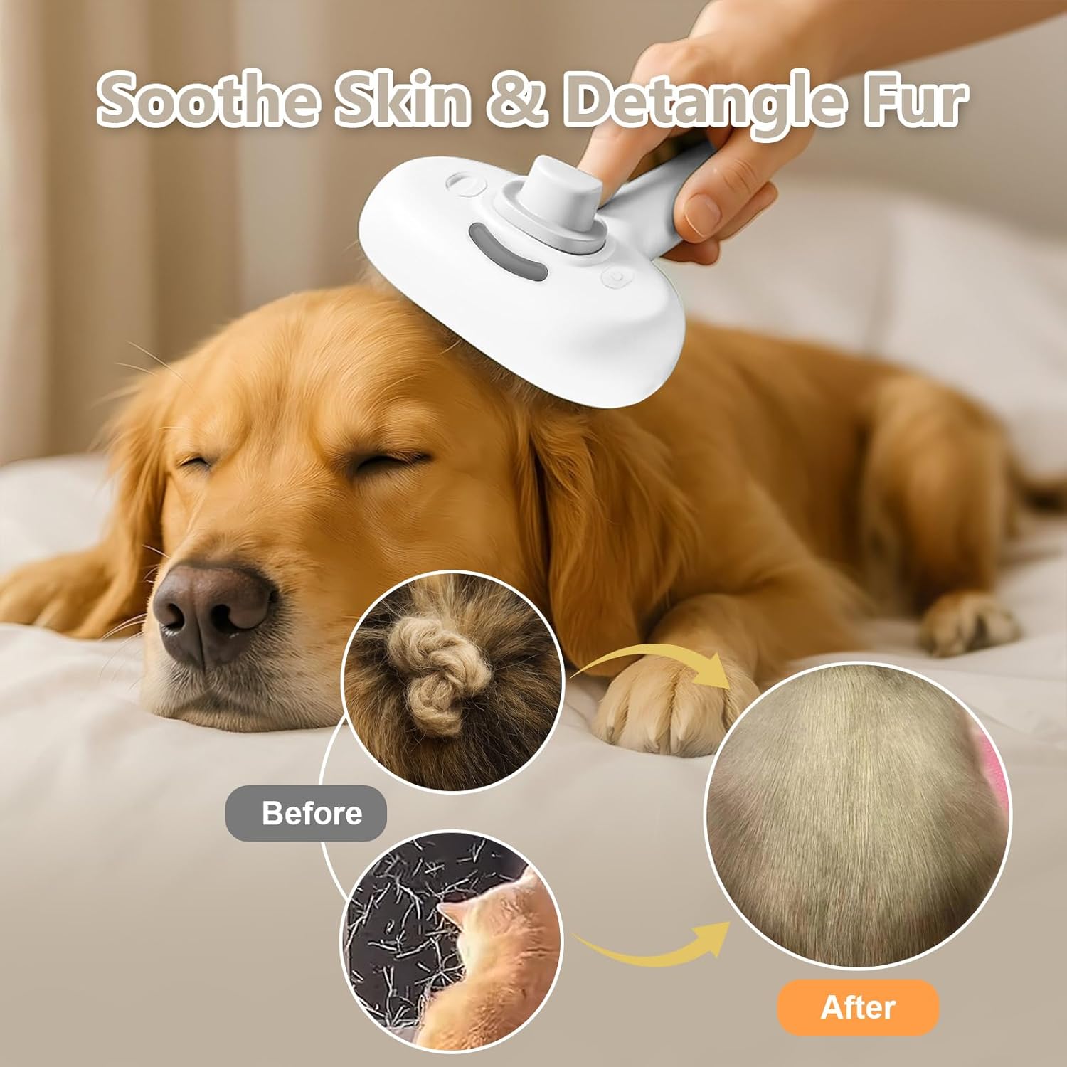 ‌3-in-1 Pet Steam Brush with Self-Cleaning & Cool Mist‌ – Portable Grooming Tool for Cats & Dogs, Long-Lasting Shedding Control & Detangling, Refillable Water Tank & Fast Charging