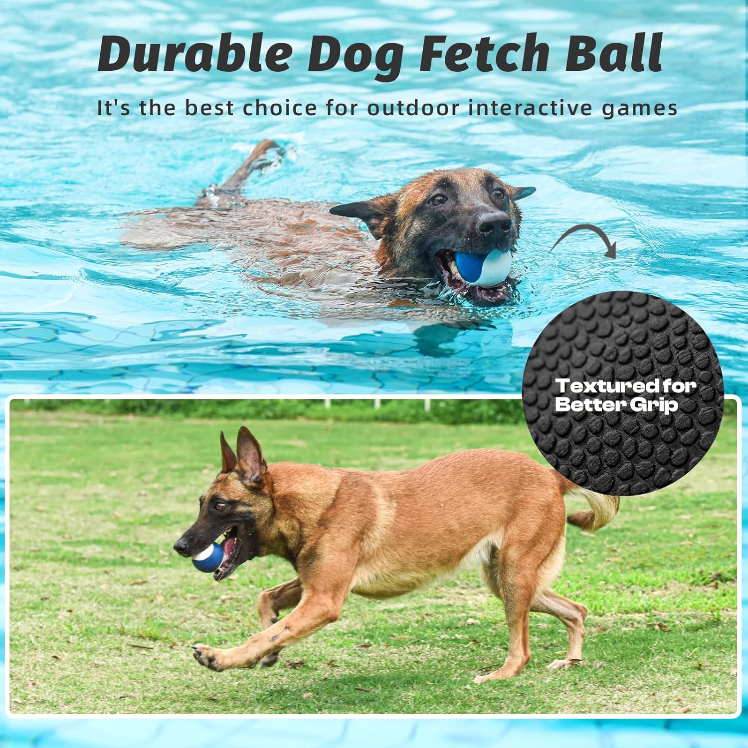 - Dual-Color Visibility & Perfect Grip – The high-contrast dual-color design makes it easy to spot in grass, water, or dirt. Its textured surface offers superior grip, allowing dogs to catch and retrieve the ball without slipping.