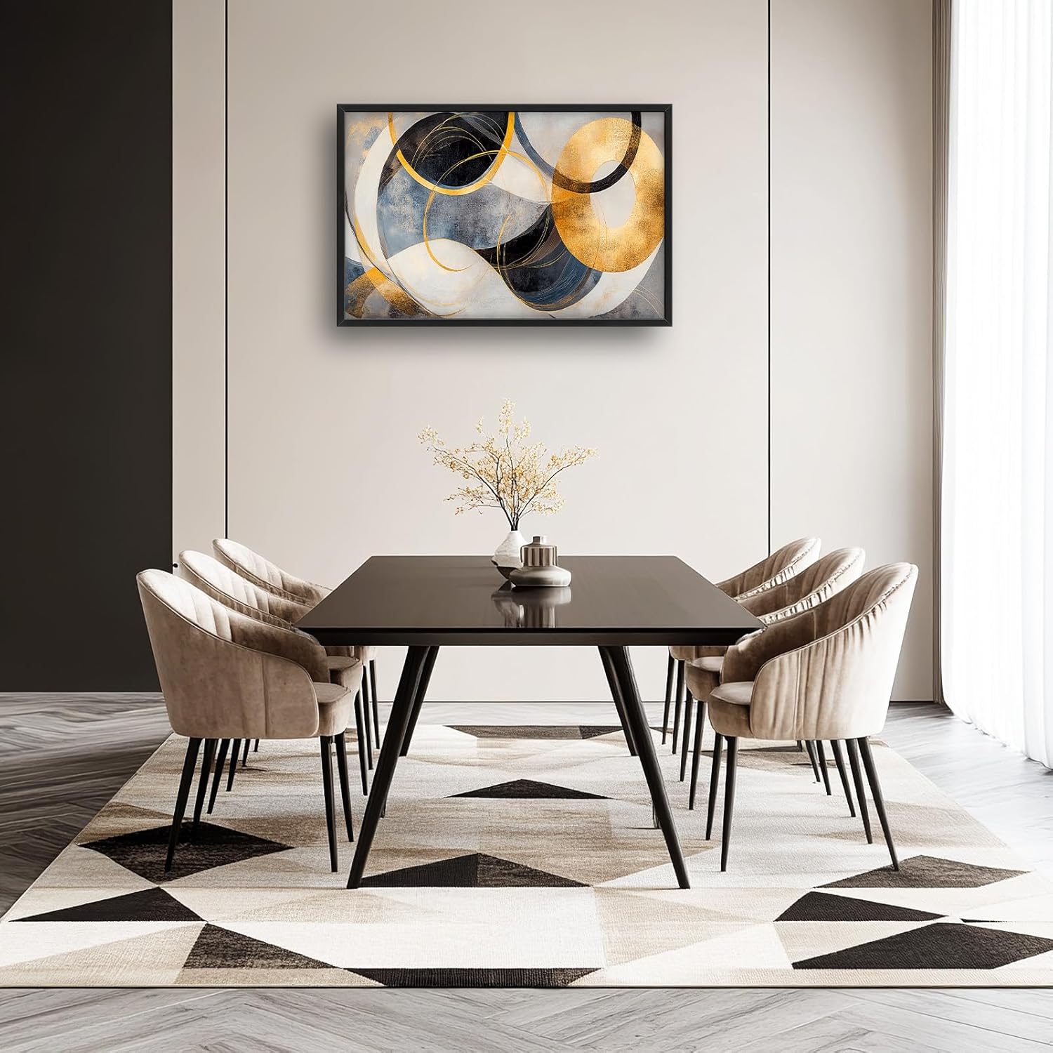 Large Abstract Wall Art for Living Room, Oversized Abstract Circle Wall Decor, Black and Golden Abstract Canvas Painting Modern Artwork Home Decoration for Living Room Bedroom Office Framed 36"x24"