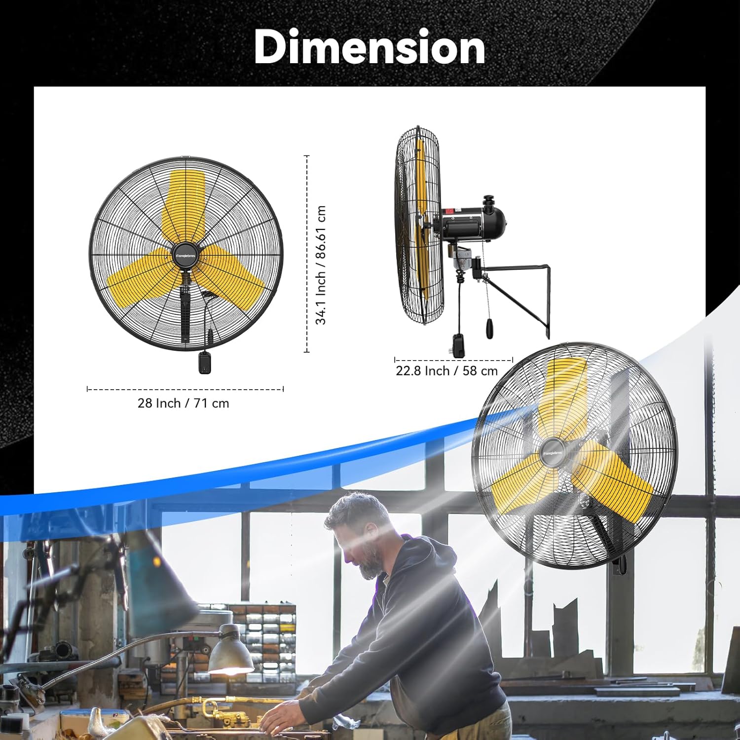 - šš¢š š” ššš„šØšš¢šš² šš¢š« š š„šØš° - The oscillating wall fan zipper design makes the operation more intuitive and simple, and can be adjusted from high, medium and low speeds by zipper to meet different needs. High speed 9500 CFM, medium speed 8000 CFM, low speed 7200 CFM, providing hurricane-like airflow to meet your garages, shops, covered patios, or anywhere else you need