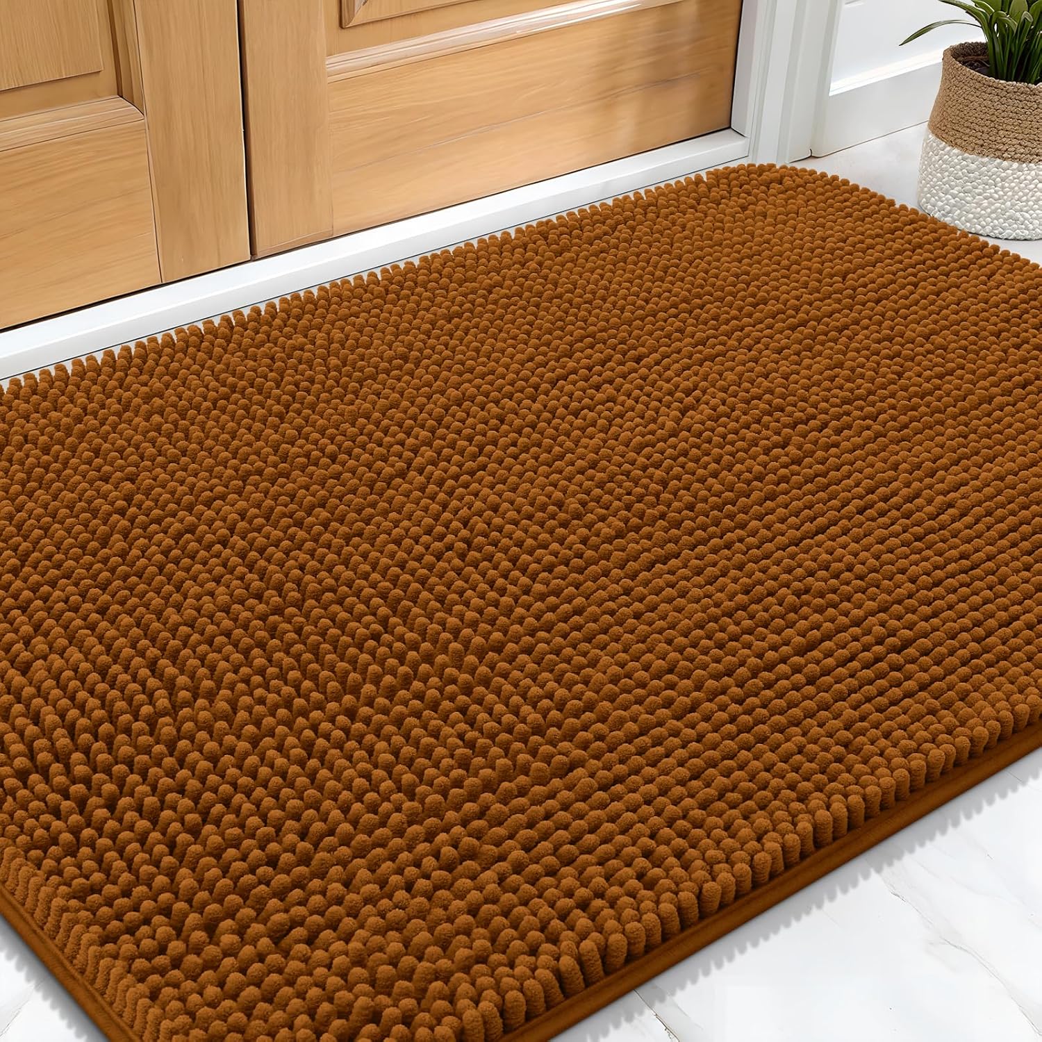 - [LOW PROFILE AND EASY CARE] OLANLY's Chenille Dog Door Mat boasts a slim 1-inch profile, offering a sleek and streamlined appearance. The thoughtful design ensures your doors won't get stuck, and the mat stays securely in place. Cleaning is a breeze – simply shake off any dirt or debris, or toss it in the washing machine for a deeper clean. It dries quickly, so you can be sure it's ready to use again in no time.