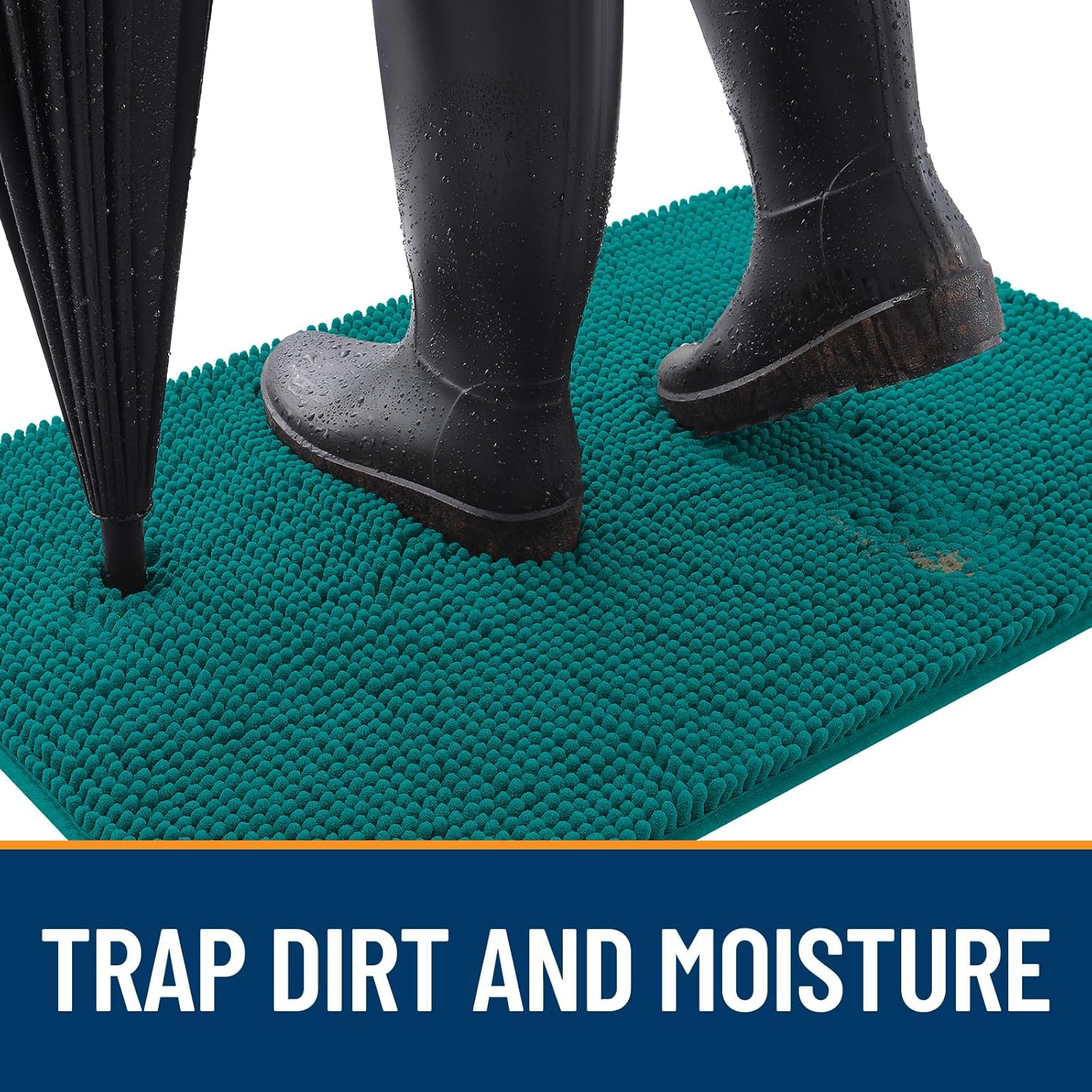 OLANLY Dog Door Mat for Muddy Paws 30x20, Absorbs Moisture and Dirt, Absorbent Non-Slip Washable Doormat, Quick Dry Chenille Mud Mat for Dogs, Entry Indoor Entryway Carpet for Inside Floor, Lake Blue