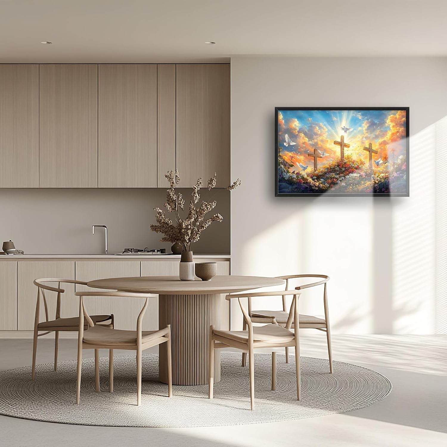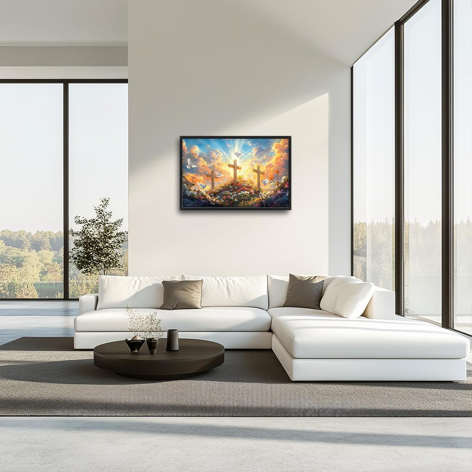 Framed Large Christian Jesus Wall Art, Oversized Floral Dove Wall Decor for Living Room, Landscape Canvas Painting Peaceful Pictures Modern Artwork for Living Room Bedroom Office 36"x24"