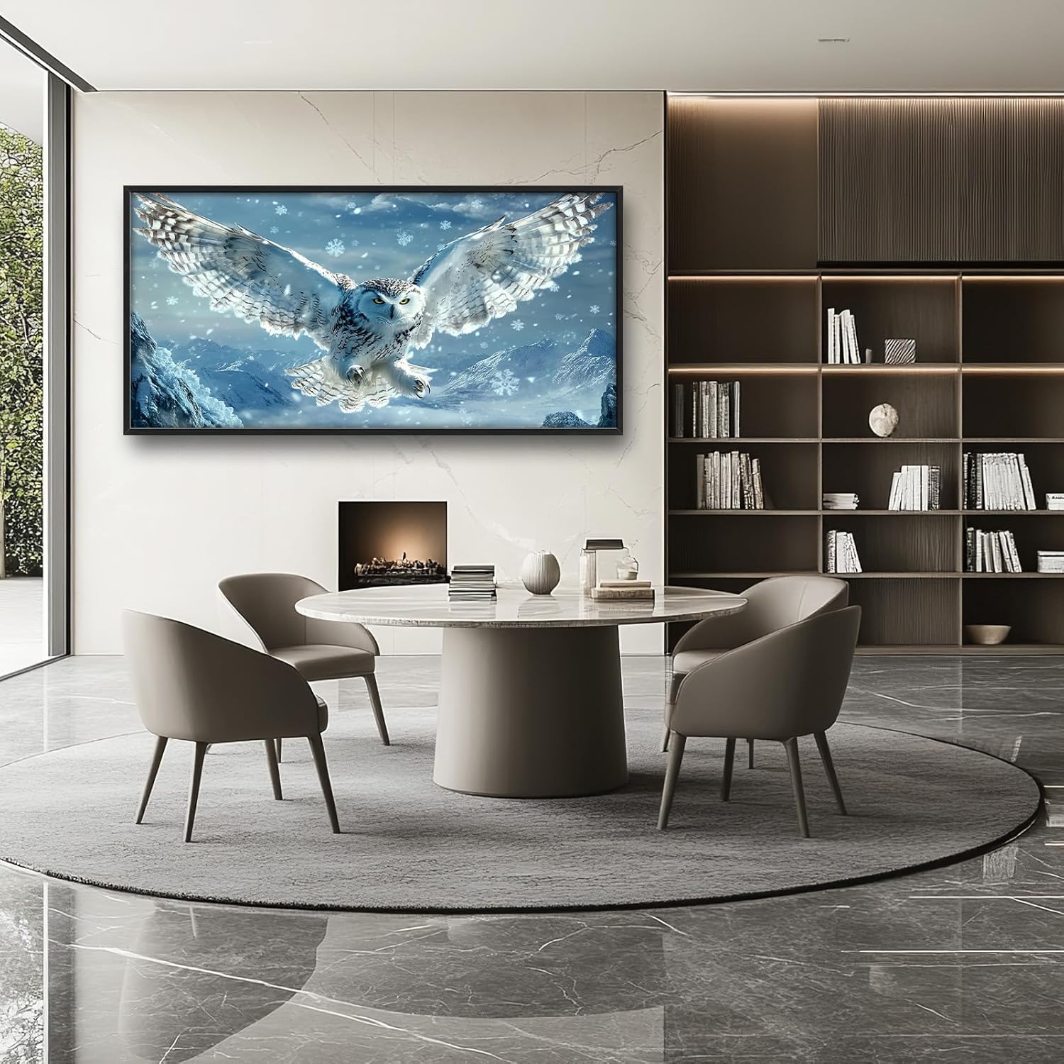 Framed Large Snowy Owl Wall Art for Living Room, Oversized Snowy Mountain Wall Decor Landscape Canvas Painting Modern Artwork Home Decoration for Living Room Bedroom Office 60"x30"