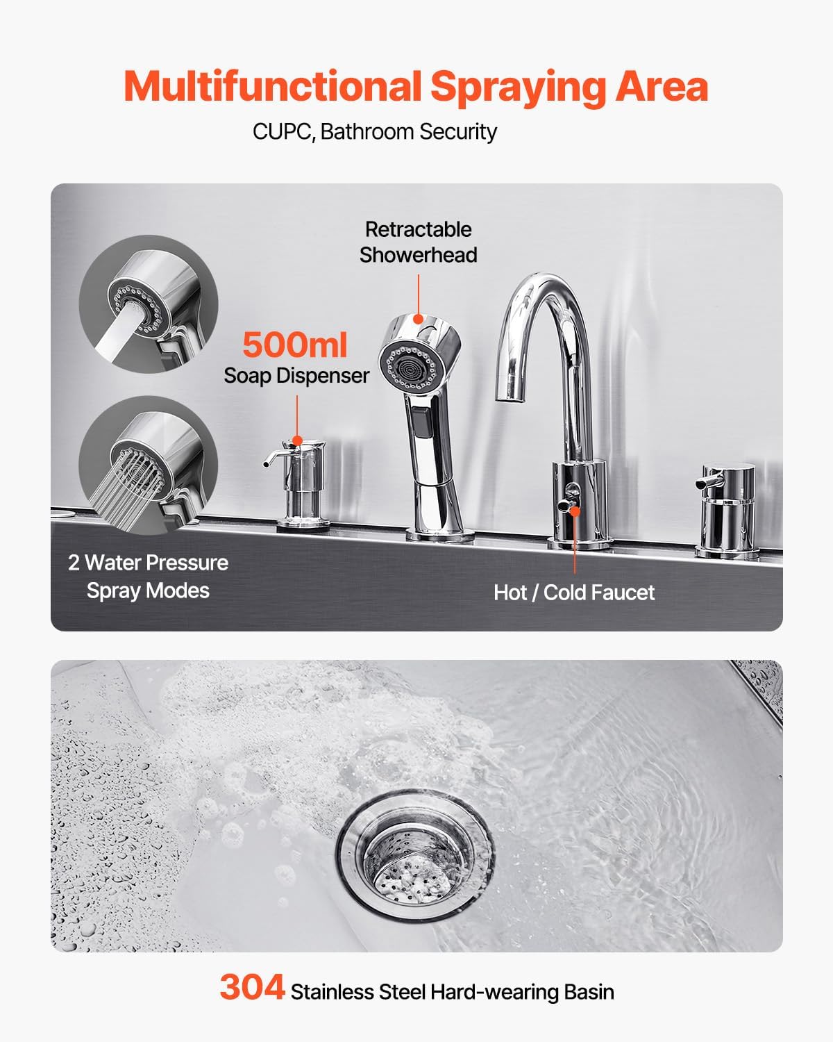 • More Comfortable Grooming: The dog grooming tub's faucet is featuring CUPC and bathroom security certification, the hot and cold dual-control faucets and gentle/strong dual water pressure showerhead provide versatility. The 500 ml large-capacity soap dispenser ensures long-lasting use with each refill. The 304 stainless steel tub body is scratching-resistant and corrosion-proof