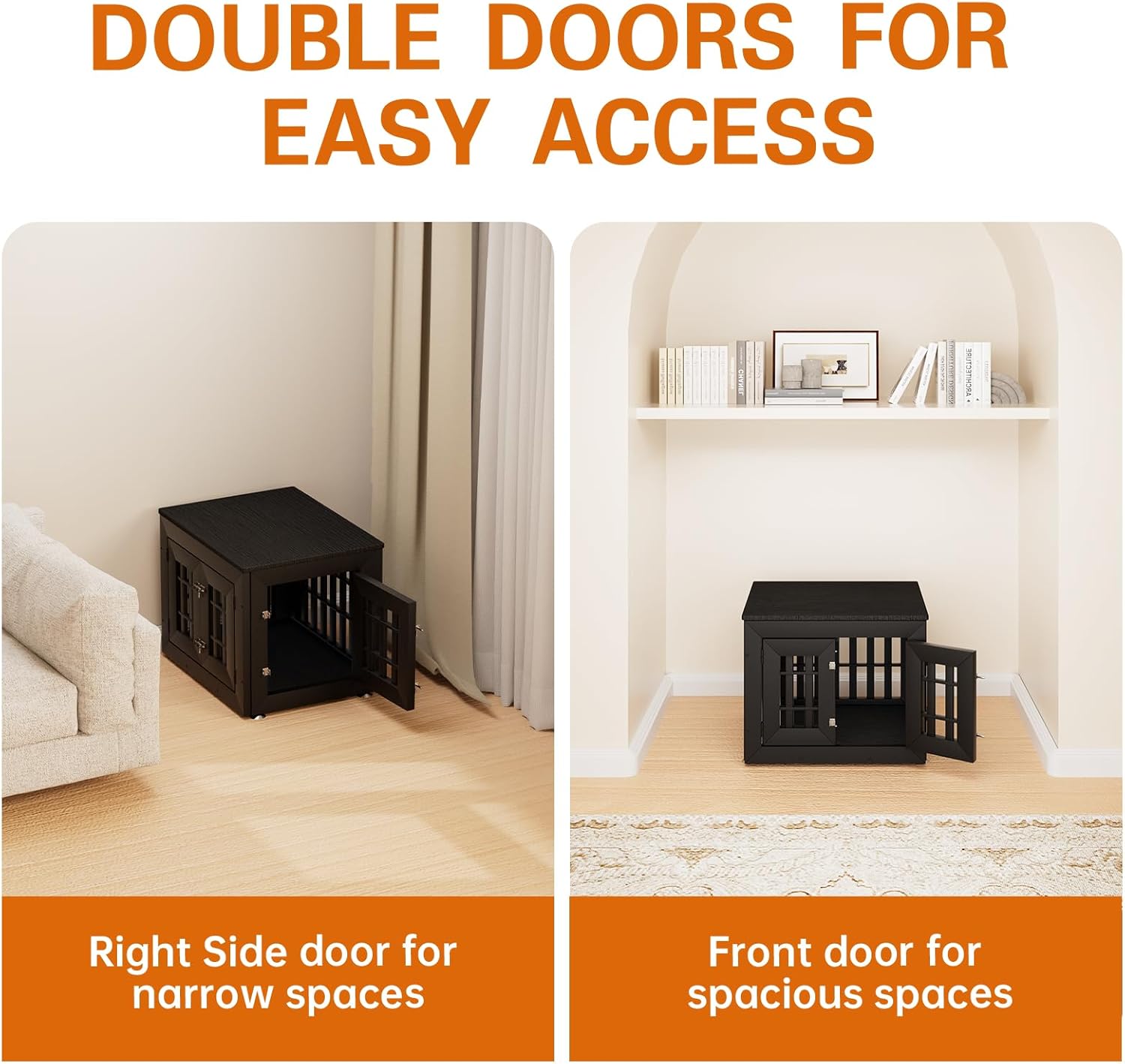 • 【Double Doors Design】The dog kennel furniture has a front door and a side door, your pet will go in and out easily with double doors. The double-doors design can adapt to more different space environments. You can decide whether to open the front door or the side door according to your needs