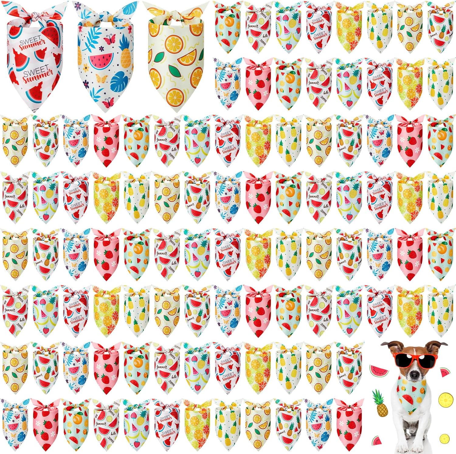 - Sufficient Quantity: you will receive 100 pcs Fruit Dog Bandanas in 10 different designs, 10 pieces each style, enough quantity and various styles can meet your pet's summer party decoration needs and replacement or share with your family and friends who have lovely pets