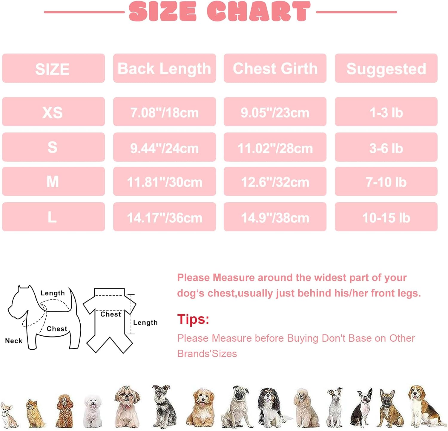 - Suitable Size: These dog pajamas are available in five sizes, from XS to L, suitable for small dogs. If you have doubts about our size, please refer to our size chart to choose the right clothing for your pet.