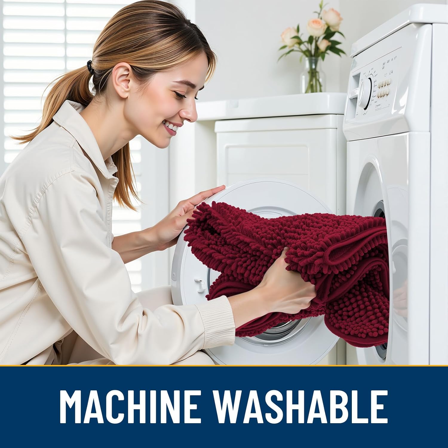 Smiry Dog Door Mat for Muddy Paws 47x24, Absorbs Moisture and Dirt Doormat, Non-Slip Washable Quick Dry Chenille Front Door Mat Indoor Entrance, Entryway Carpet for Inside Floor, Burgundy