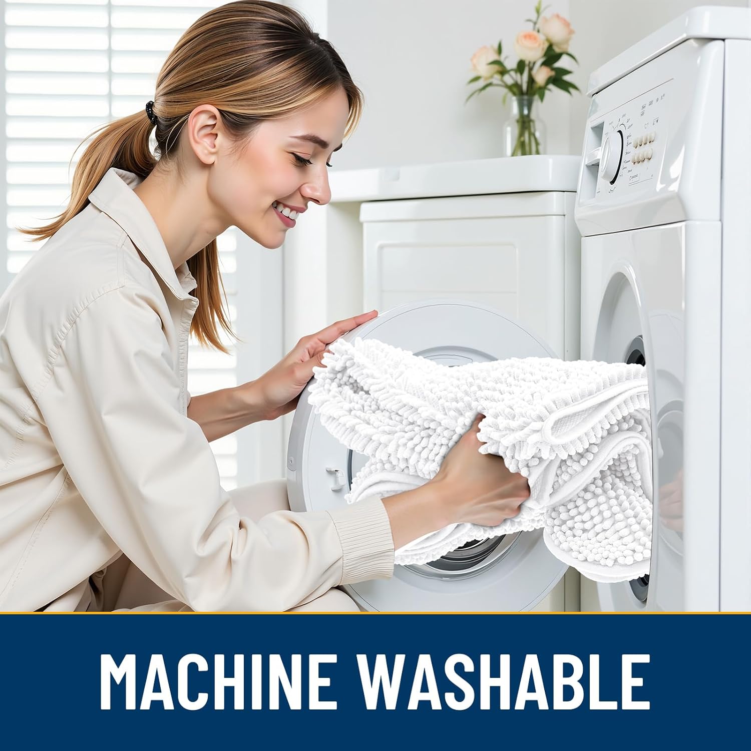 Smiry Dog Door Mat for Muddy Paws 24x16, Absorbs Moisture and Dirt Doormat, Non-Slip Washable Quick Dry Chenille Front Door Mat Indoor Entrance, Entryway Carpet for Inside Floor, White