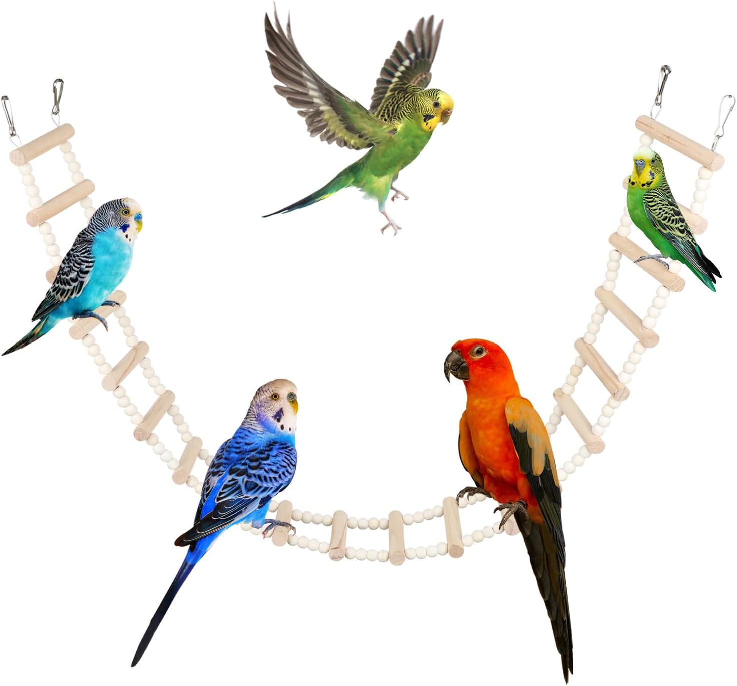 • Flexible & Bendable Design – Built with 20 wooden steps and sturdy stainless steel wire, this 45" ladder easily bends into various shapes to fit different cages or creative play setups – no rust, no hassle!