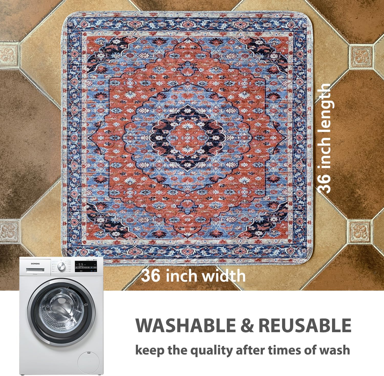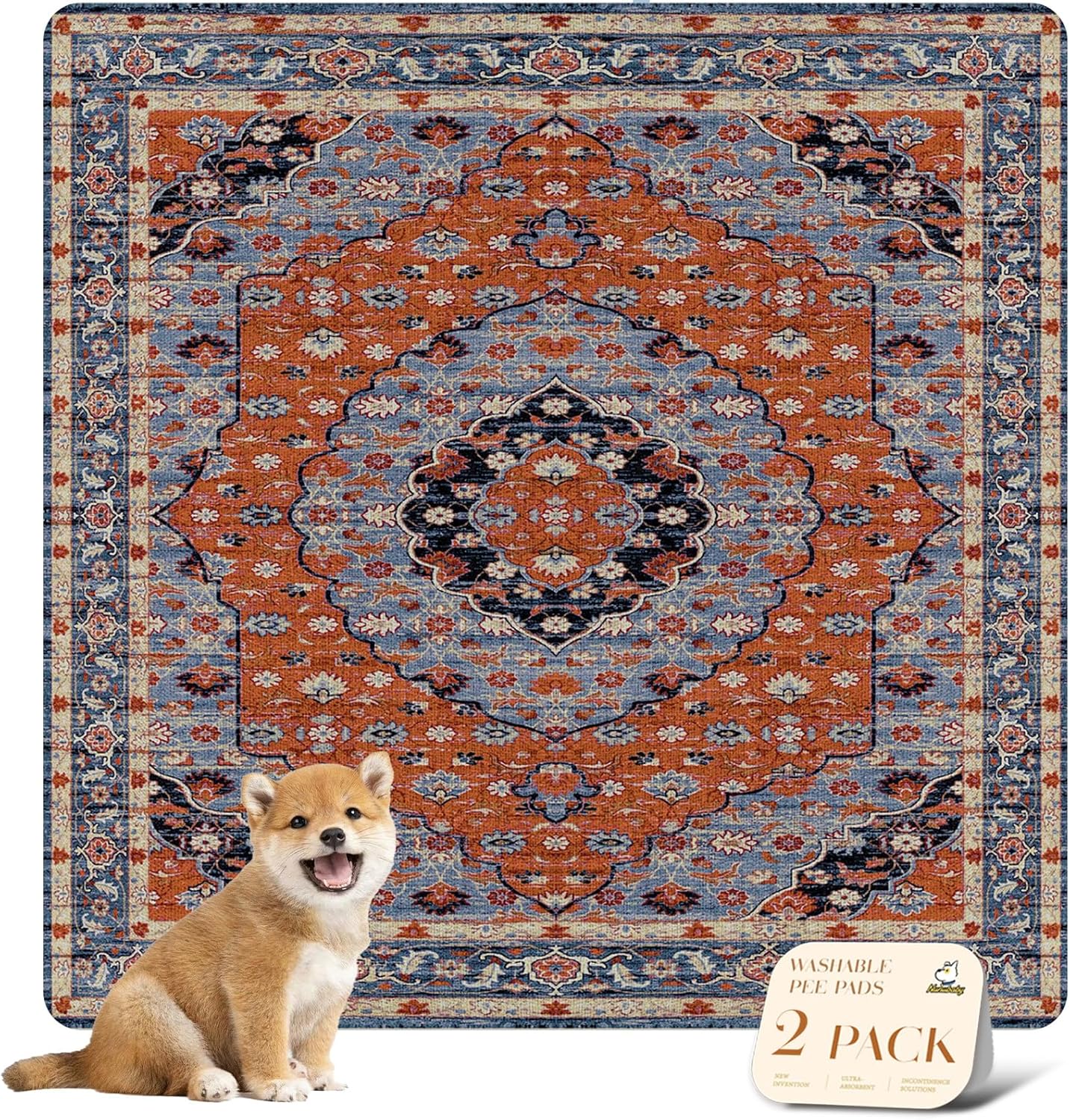 nunubaby Washable Pee Pads for Dogs, Stylish, Non-Slip and Leak-Proof Pee Pads. Reusable Potty Pads for Dogs for Crates and Floors.(Red/Multi, 36" x36")
