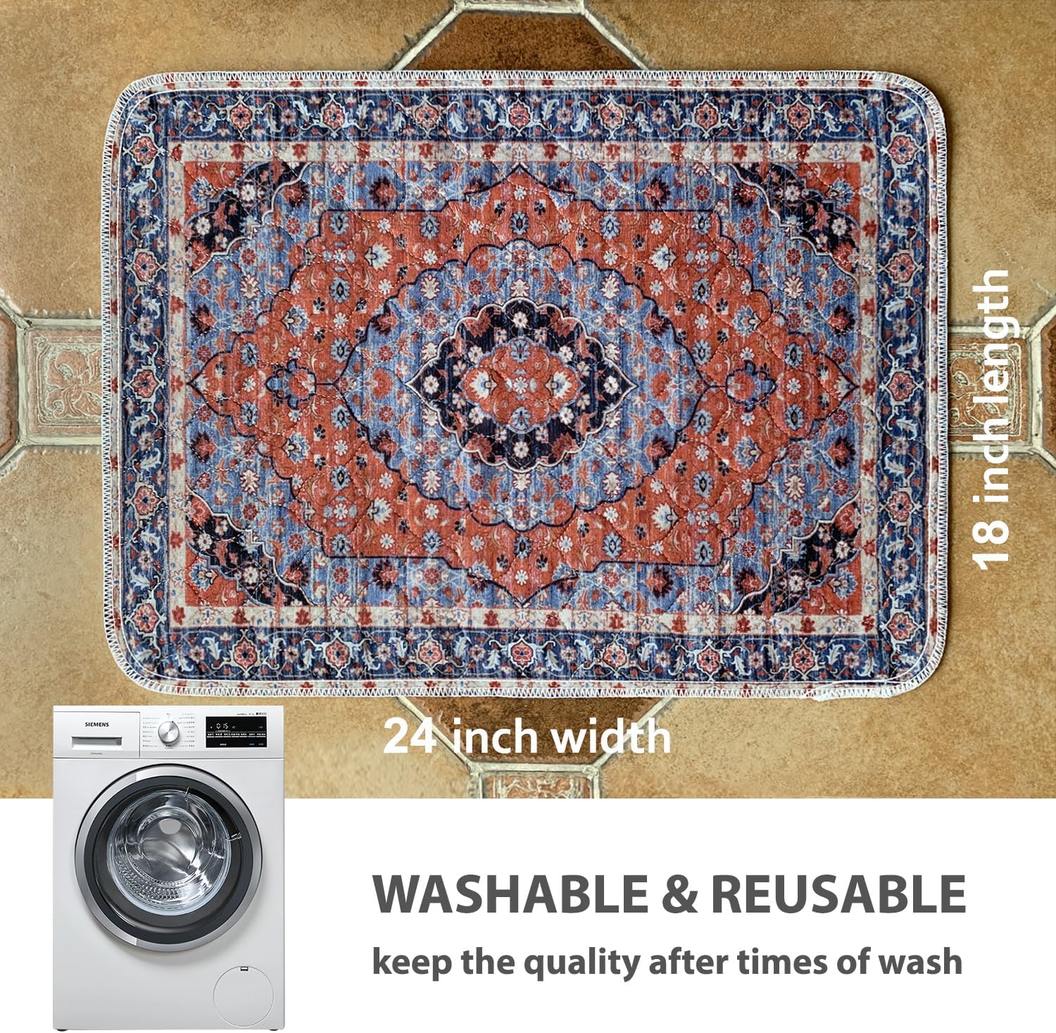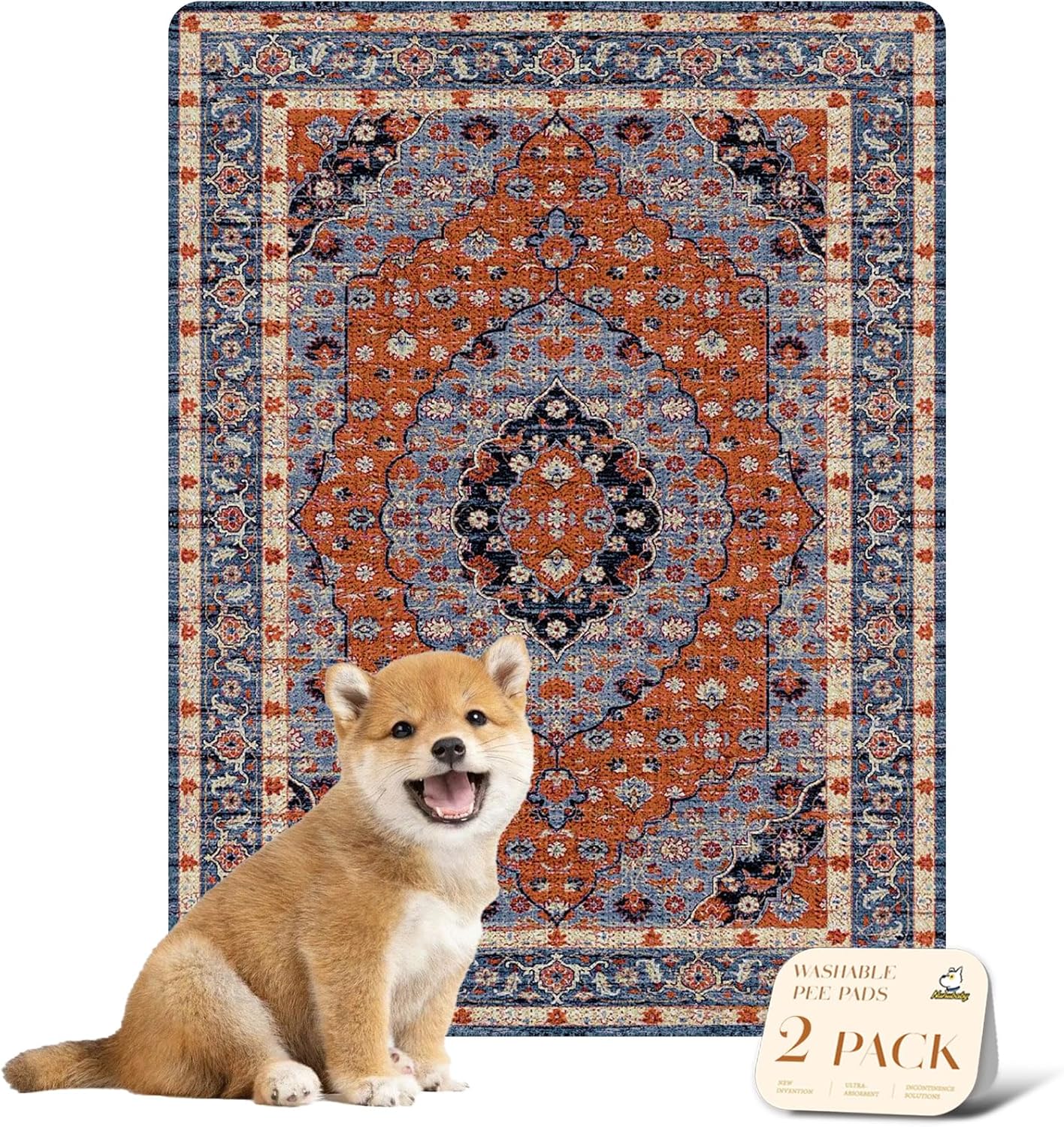 nunubaby Washable Pee Pads for Dogs, Stylish, Non-Slip and Leak-Proof Pee Pads. Reusable Potty Pads for Dogs for Crates and Floors.(Red/Multi, 18" x24")