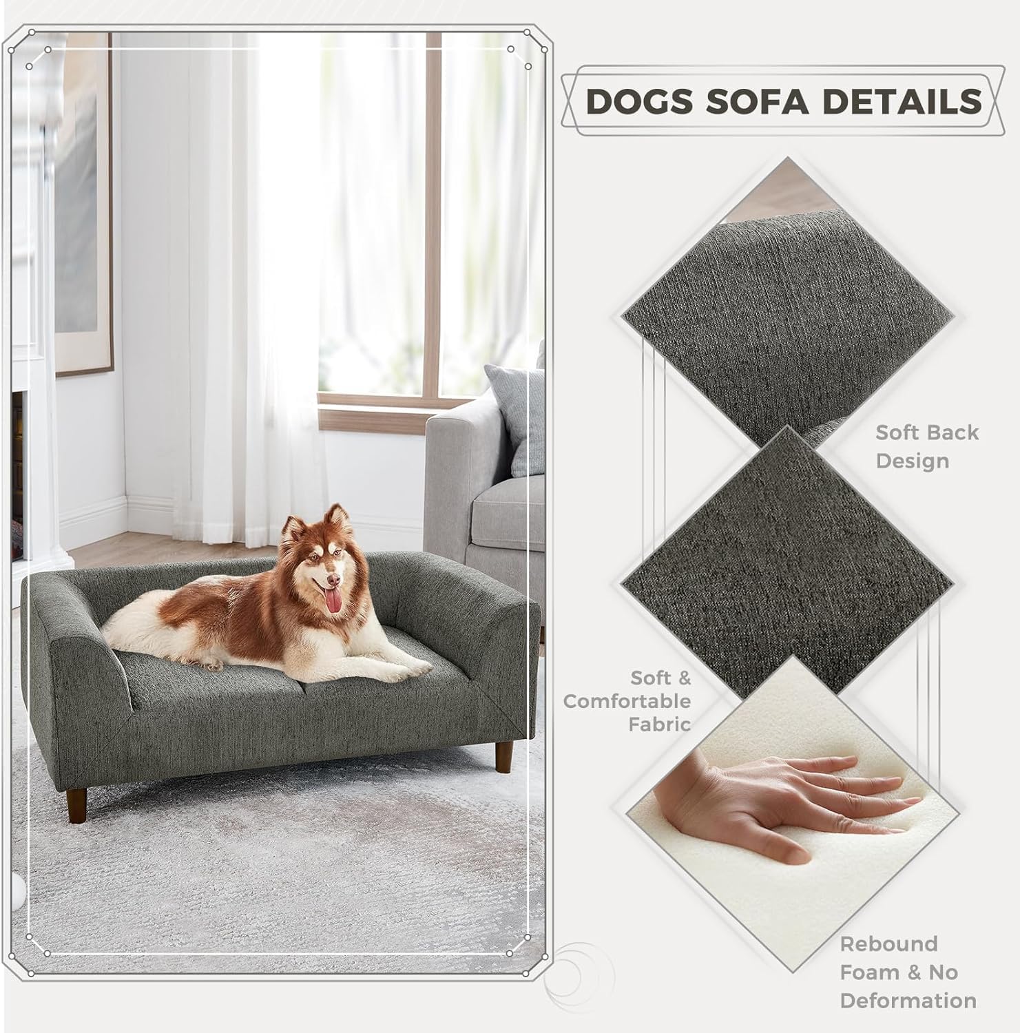 • Durable & Stylish Materials: Made from durable rubber wood, plywood, and soft linen fabric, this dog bed sofa is built to last and easy to clean.