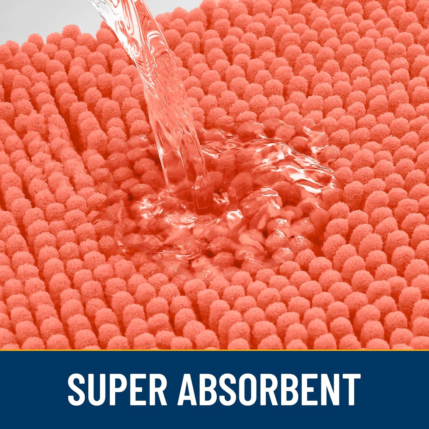 Smiry Dog Door Mat for Muddy Paws 30x20, Absorbs Moisture and Dirt Doormat, Non-Slip Washable Quick Dry Chenille Front Door Mat Indoor Entrance, Entryway Carpet for Inside Floor, Coral