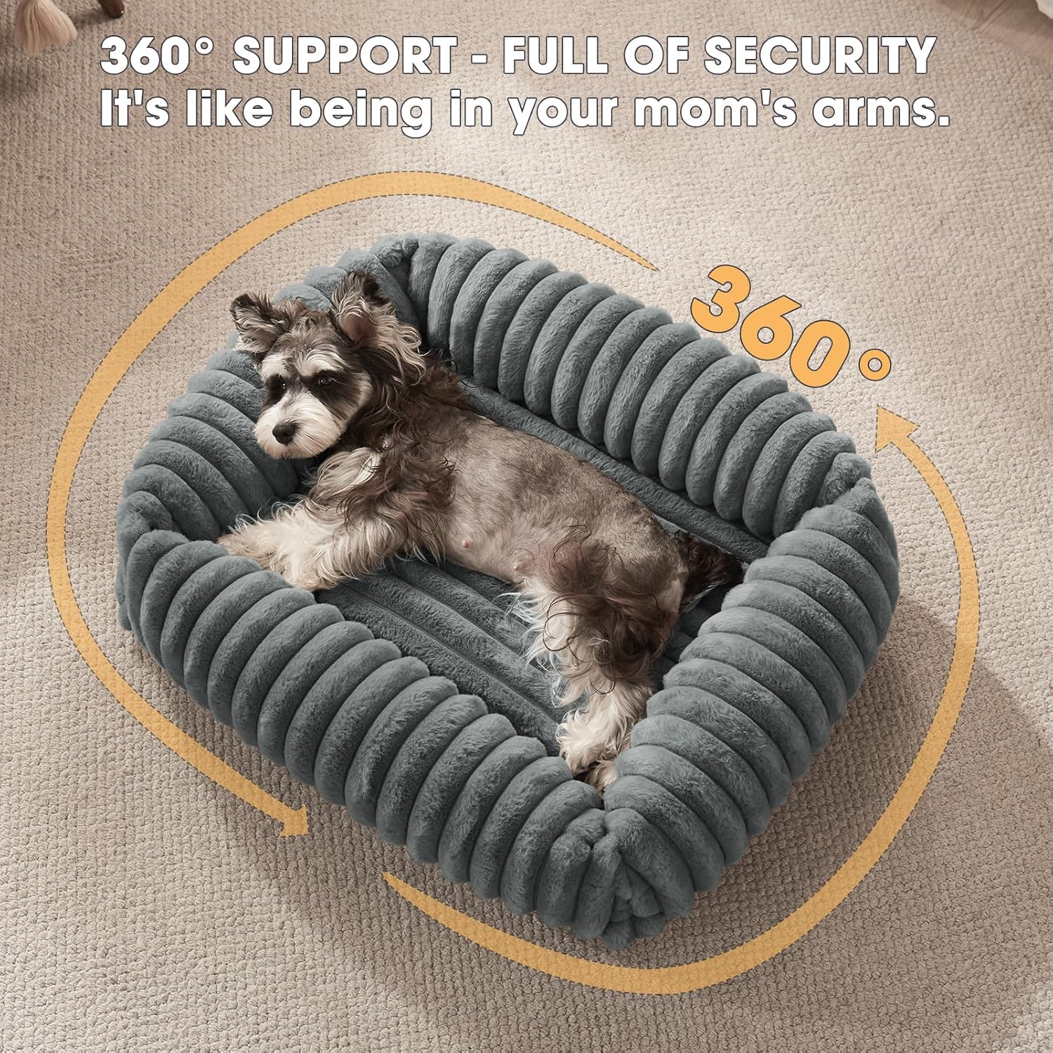 - SAFE AND SECURE: The anti-slip bottom of dog beds for a puppy, small, medium or large dog ensures your pet bed stays in place, offering extra safety and stability for your furry friend. The 360°-support-style security design helps new puppies adjust to new homes and reduces dog anxiety, which calms and comforts your pet.