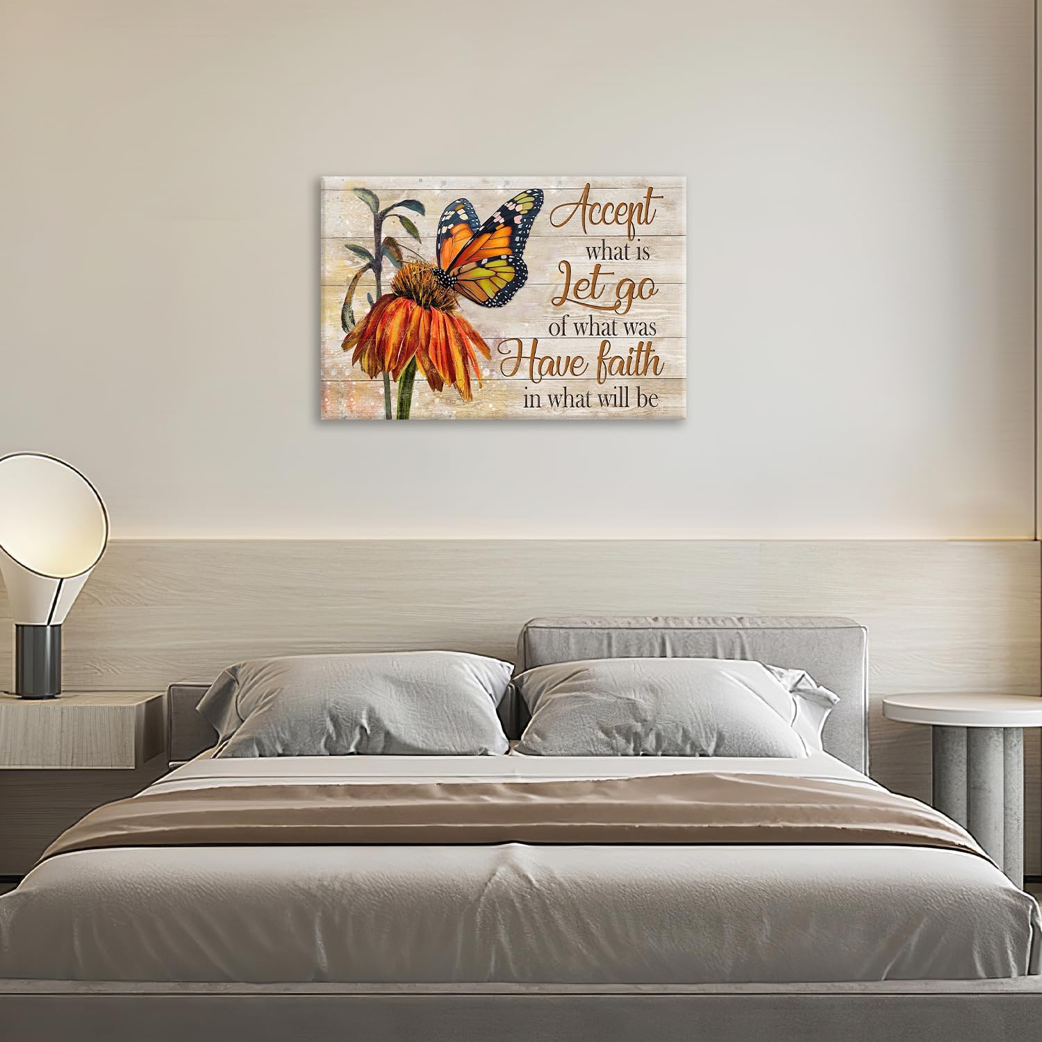 Farmhouse Butterfly Bathroom Pictures Wall Art, Rustic Floral Country Bathroom Wall Decor, Daisy Inspirational Framed Painting Canvas Artwork for Bedroom Living Room Decorations 24"L x 16"W
