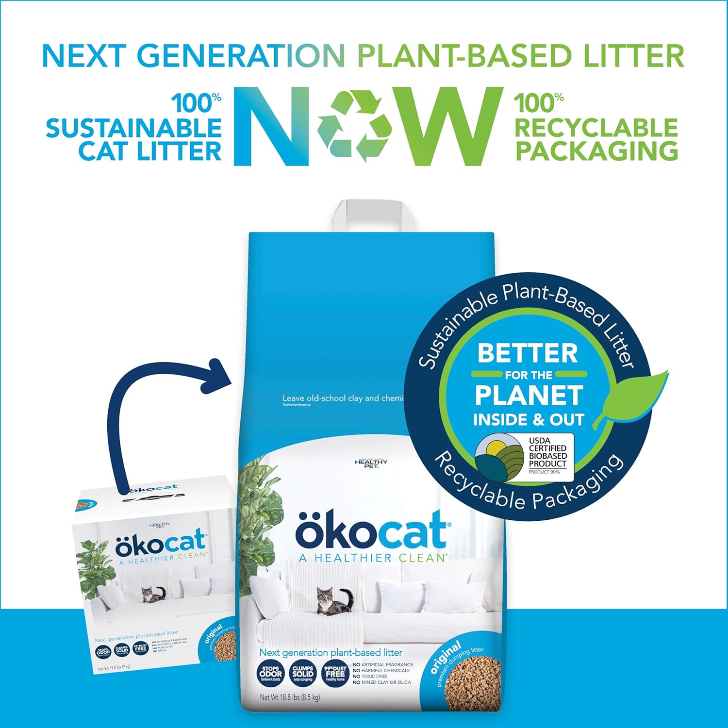 ökocat Original Wood Clumping Cat Litter, Unscented, 18.8 pounds - Natural Ingredients, Stops Odor, Clumps Solid, 99% Dust Free, Great for All Cats