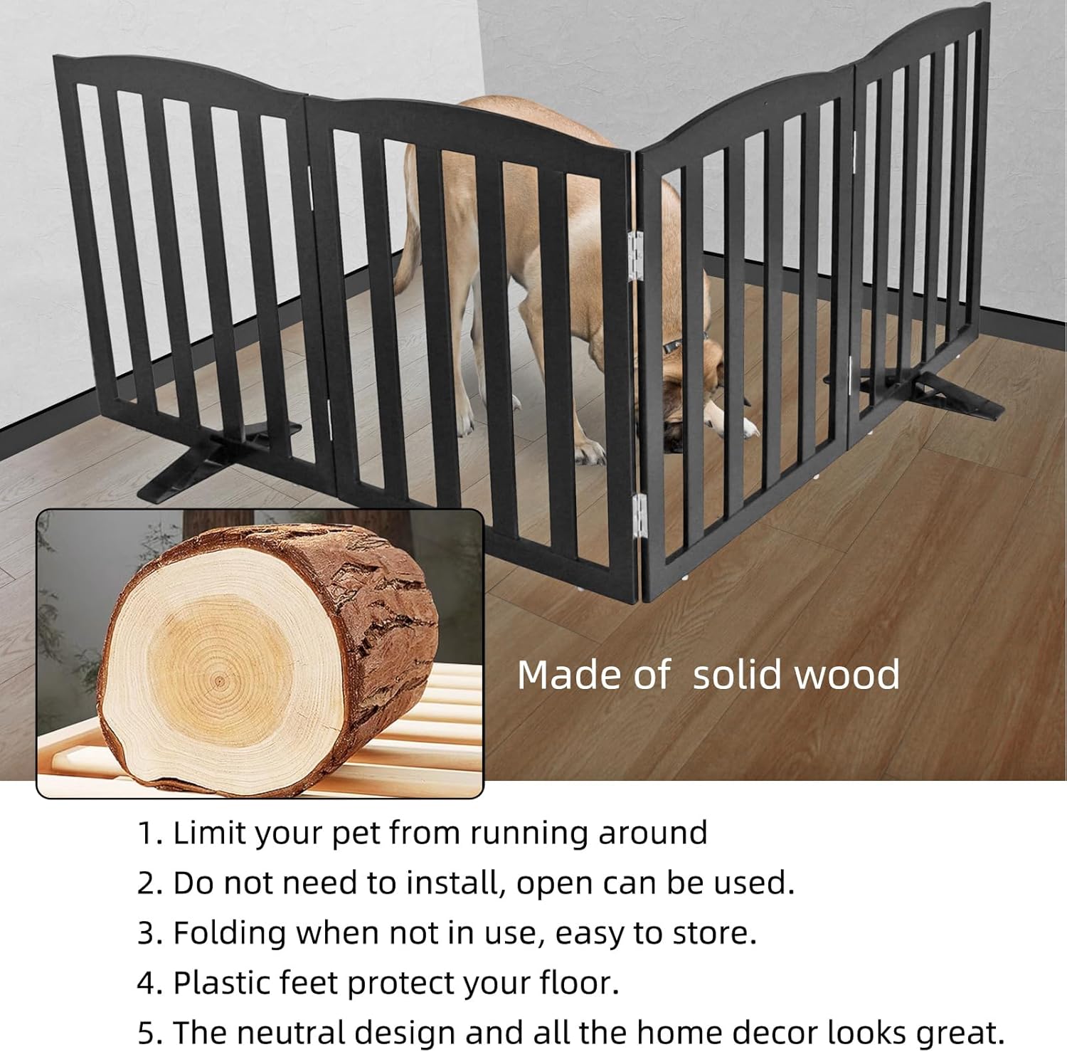 - 【3 PANELS】 Dog gates is built with 3 separate panels, secured together with sturdy stainless steel hinges.dog gates is a dog fence, room divider, and pet pen all in one.
