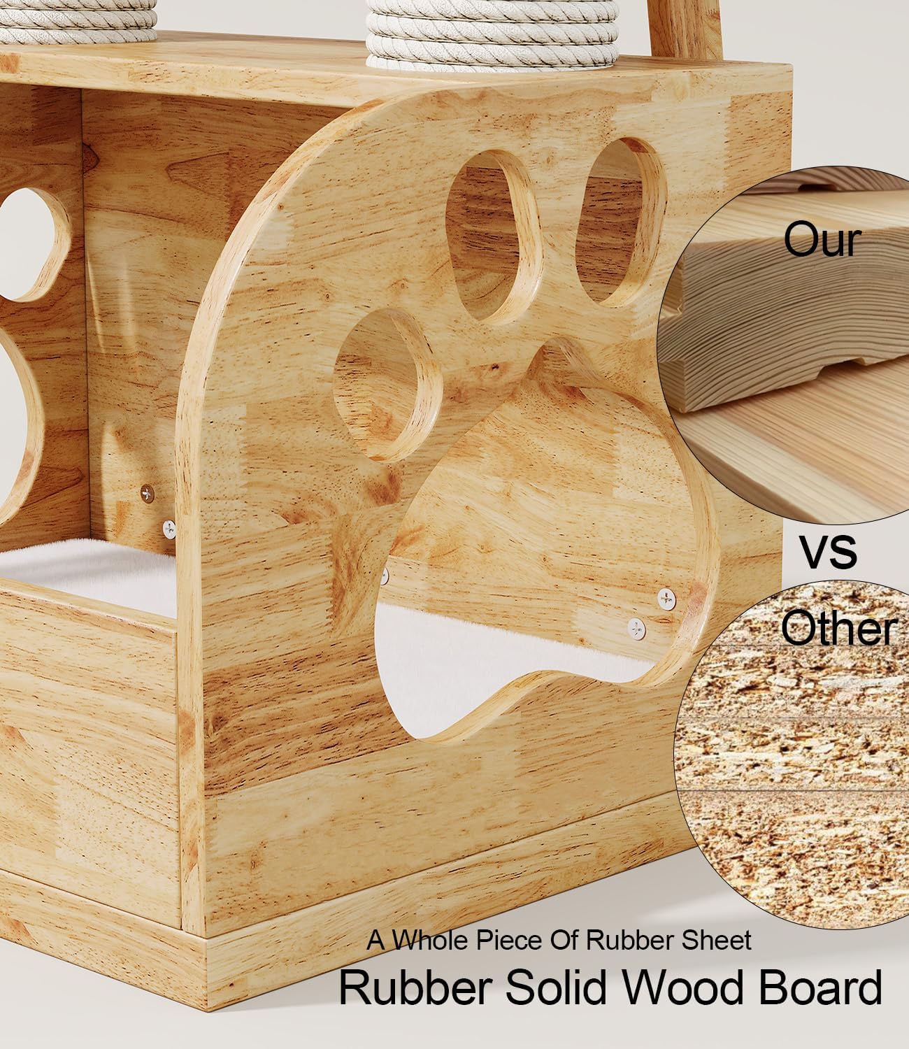 - REMOVABLE SHORT-PILE COTTON PAD: solid wood cat tower House thickness of the ground layer cushion is ≥5cm. The short-pile cotton pad (surface temperature +2℃) fits the cat's body temperature preference, and heavy duty cat tower Condo reduces joint pressure in old cats. The short-pile cotton pad can be machine washed